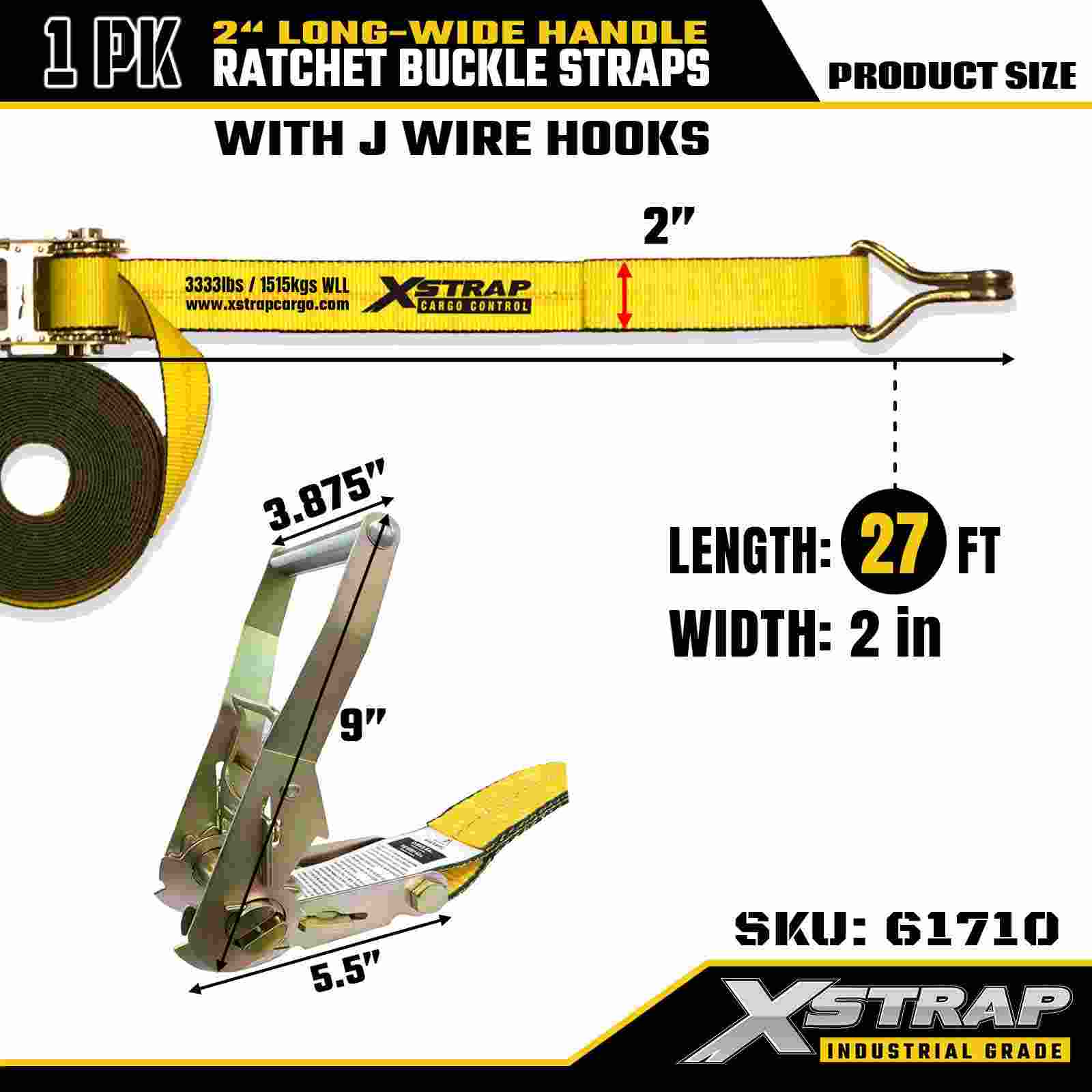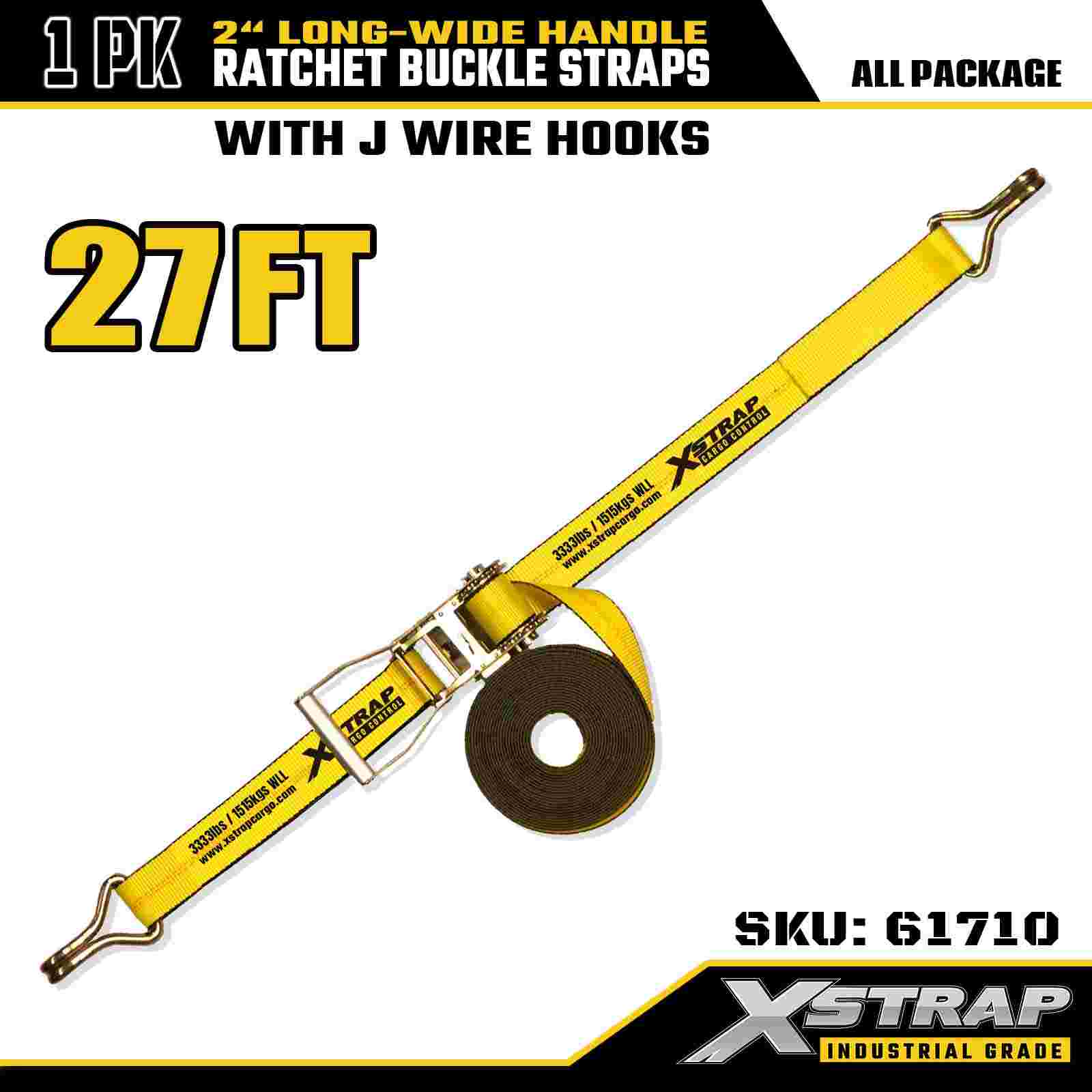 エクスストラップ 61710 プレミアム ラチェット タイダウン 2 インチ x 27 フィート (1 パック) 破断強度 10000 LBS ダブル J フック カーゴ ストラップは、家電製品、芝生用品、オートバイの移動に最適です。