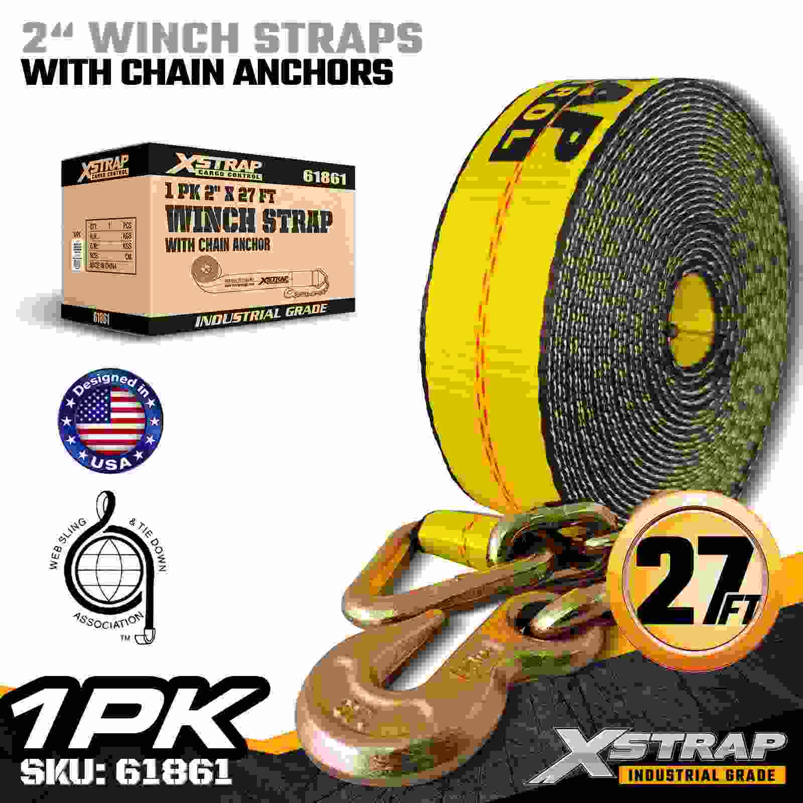 2 インチ × 27 フィートの標準ウインチ ストラップ、チェーン アンカー付き
