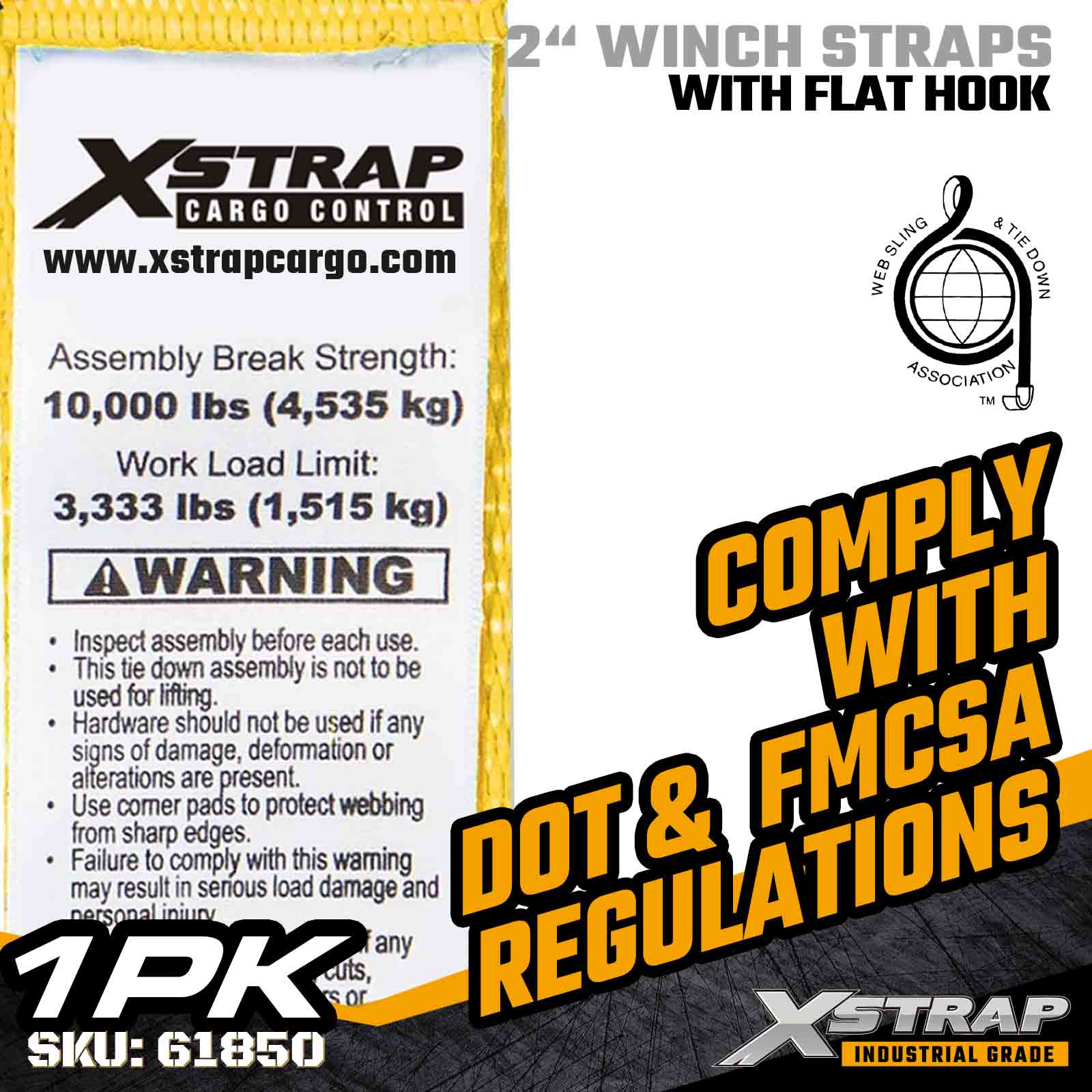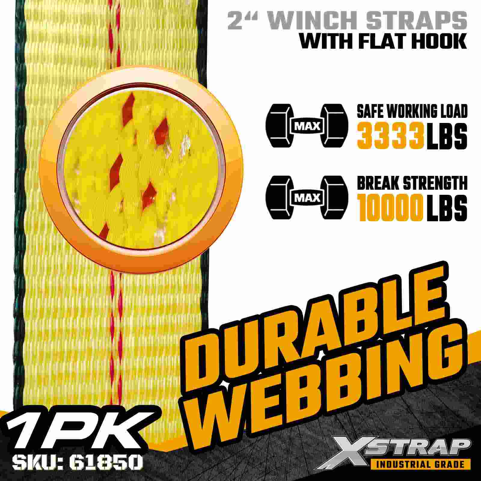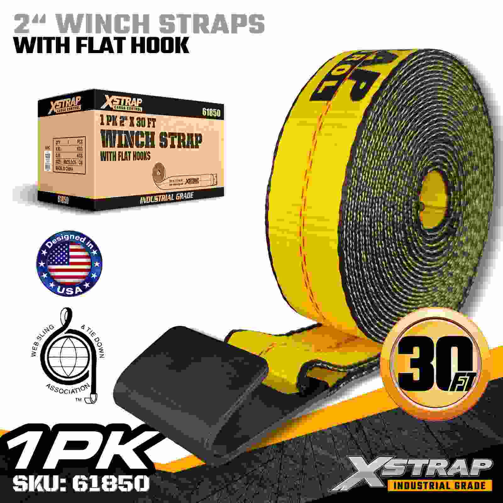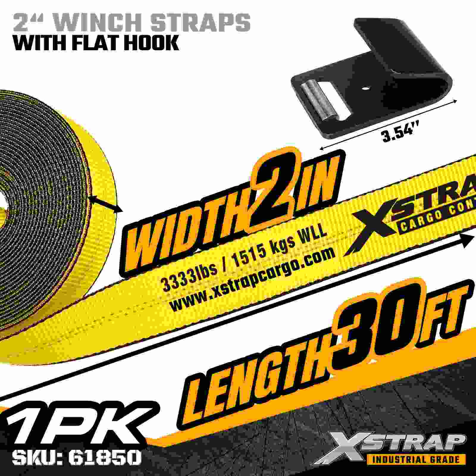 Xstrap 61850 2 インチ × 30 フィートの標準ウインチ ストラップは、強化されたフラット フックと高強度ポリエステル ウェビングを備え、信頼性の高いフラットベッド貨物固定用に構築されています。3,333 ポンドの使用荷重制限と 10,000 ポンドの破断強度を備え、毎日の貨物輸送、パレット積載、木材、パイプ、および一般的な物流用途に信頼できるパフォーマンスを提供します。
