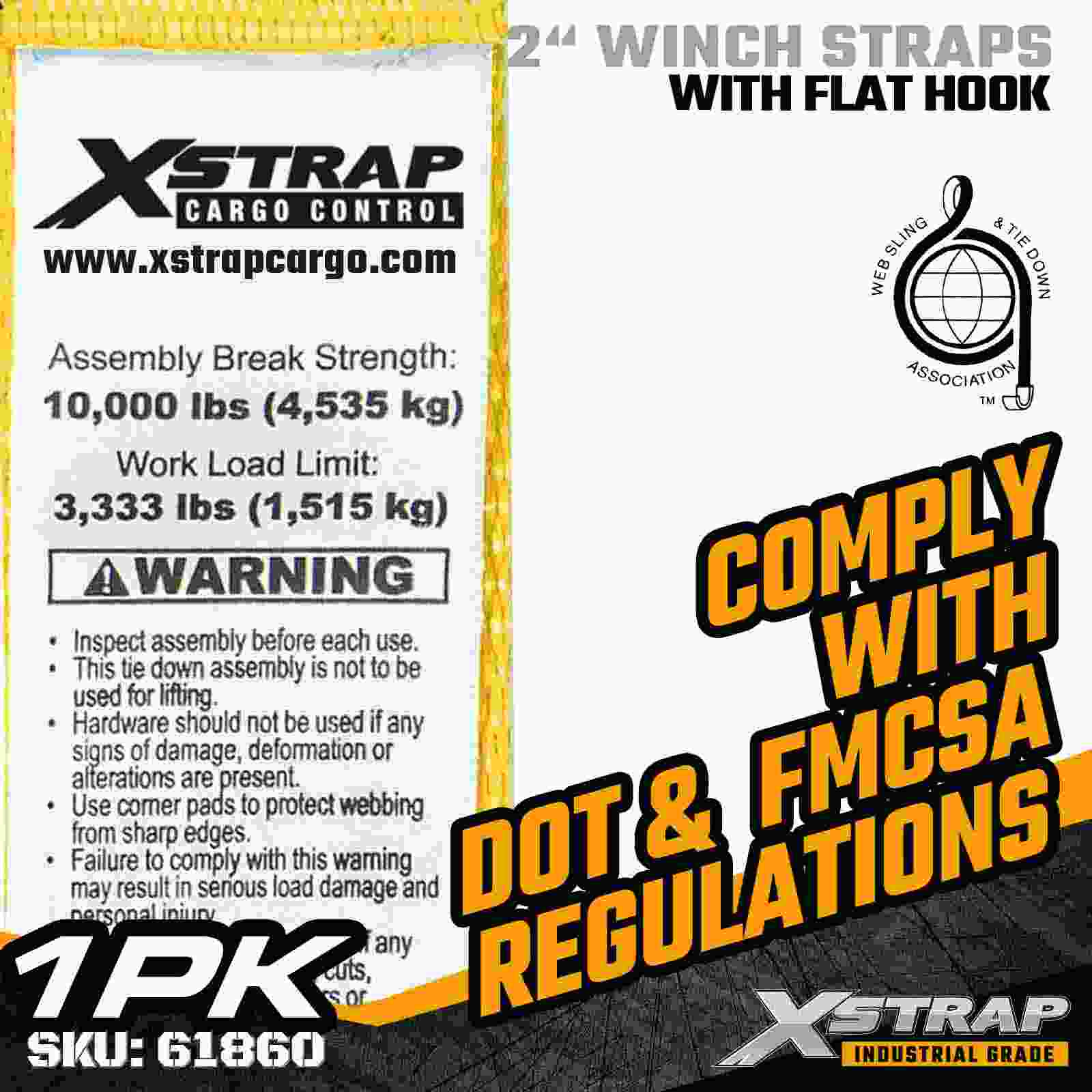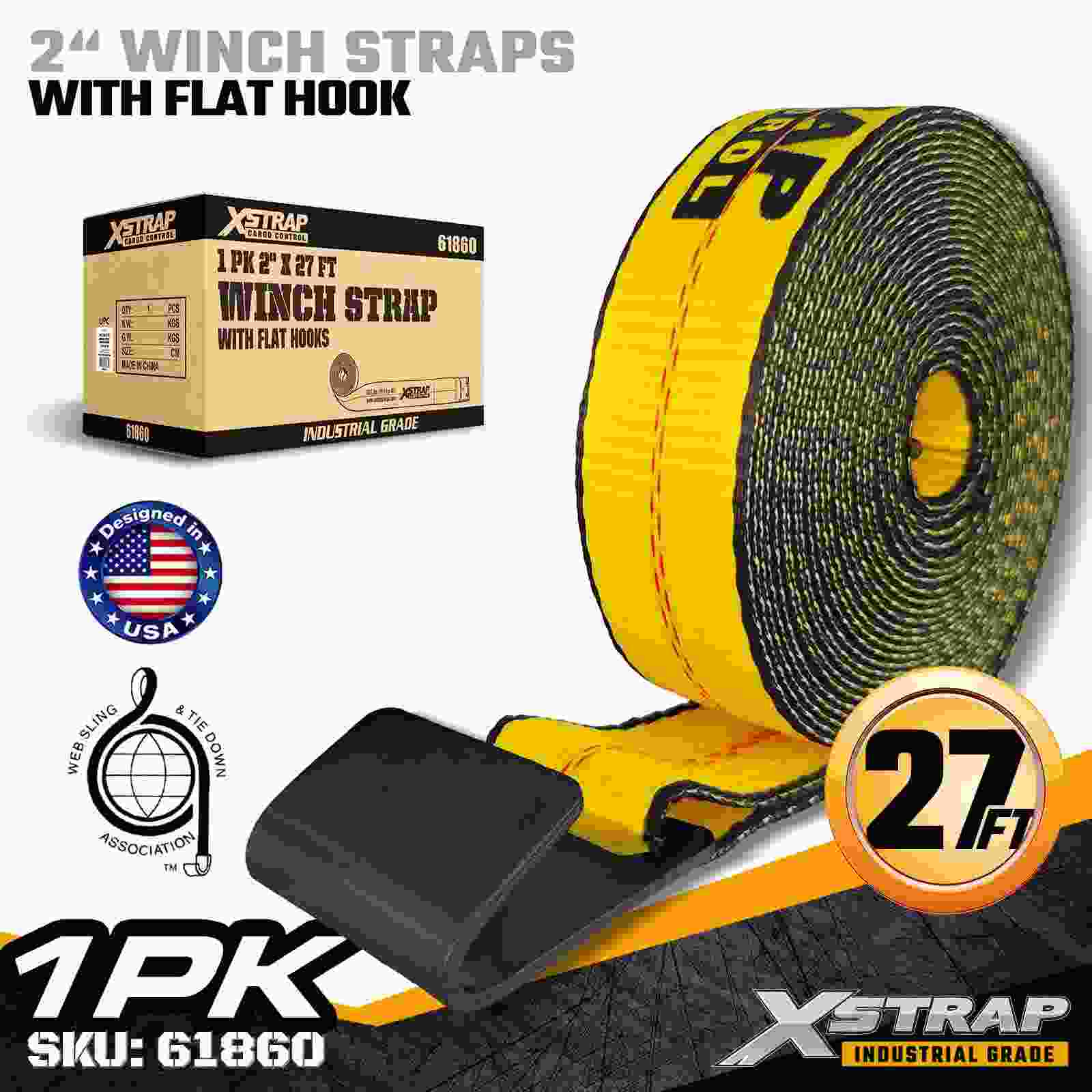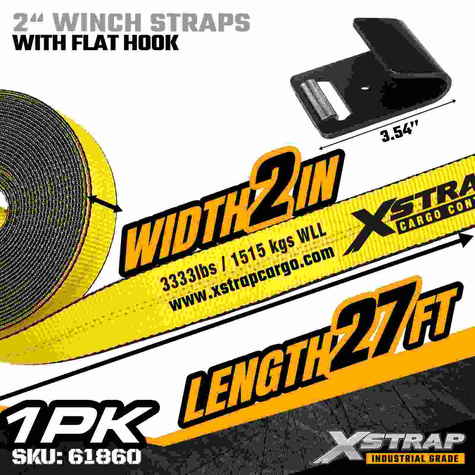 Xstrap 61860 2 インチ × 27 フィートの標準ウインチ ストラップは、強化されたフラット フックと高強度ポリエステル ウェビングを備え、信頼性の高いフラットベッド貨物固定用に作られています。3,333 ポンドの使用荷重制限と 10,000 ポンドの破断強度を備え、毎日の貨物輸送、パレット積載、木材、および一般的な物流用途に信頼できるパフォーマンスを提供します。
