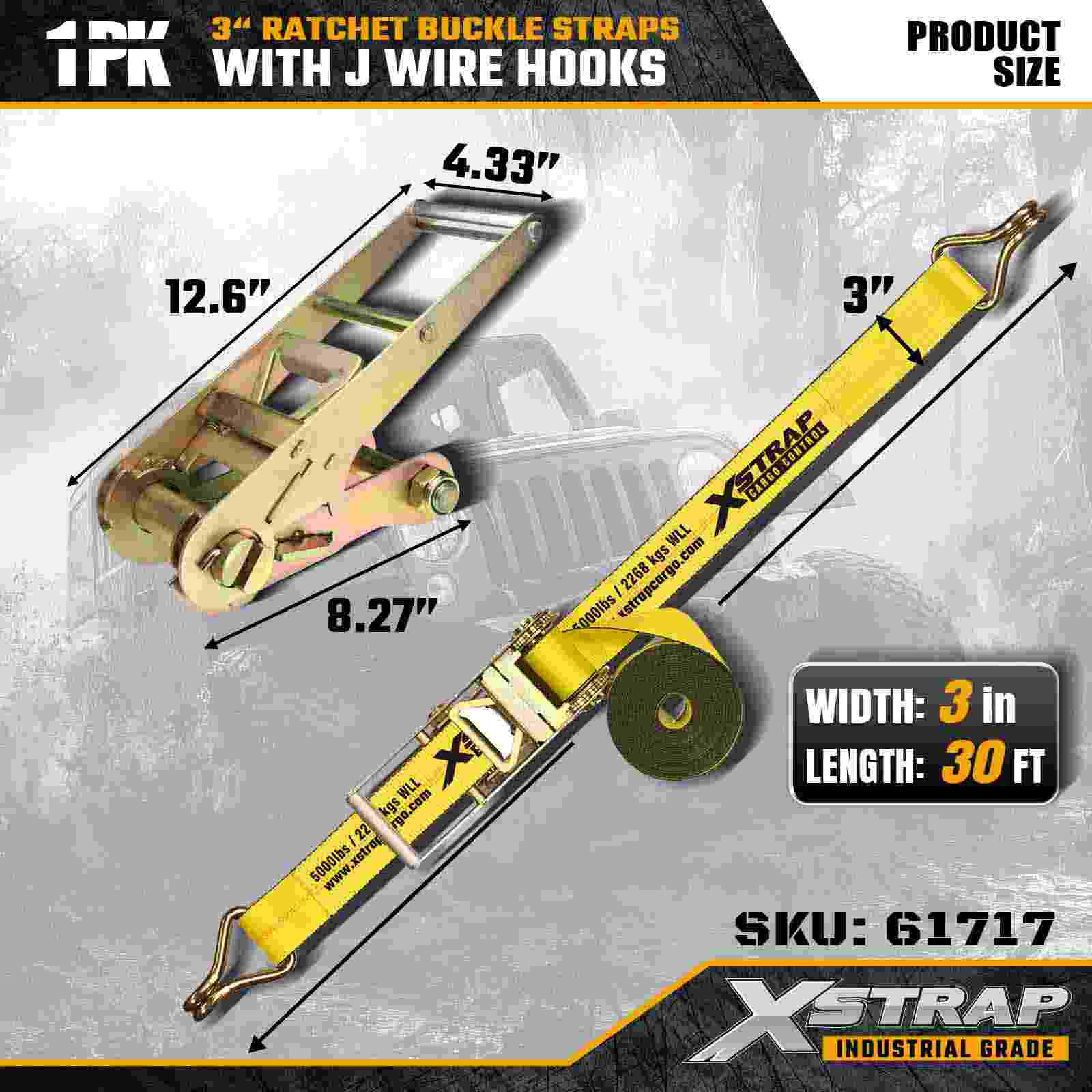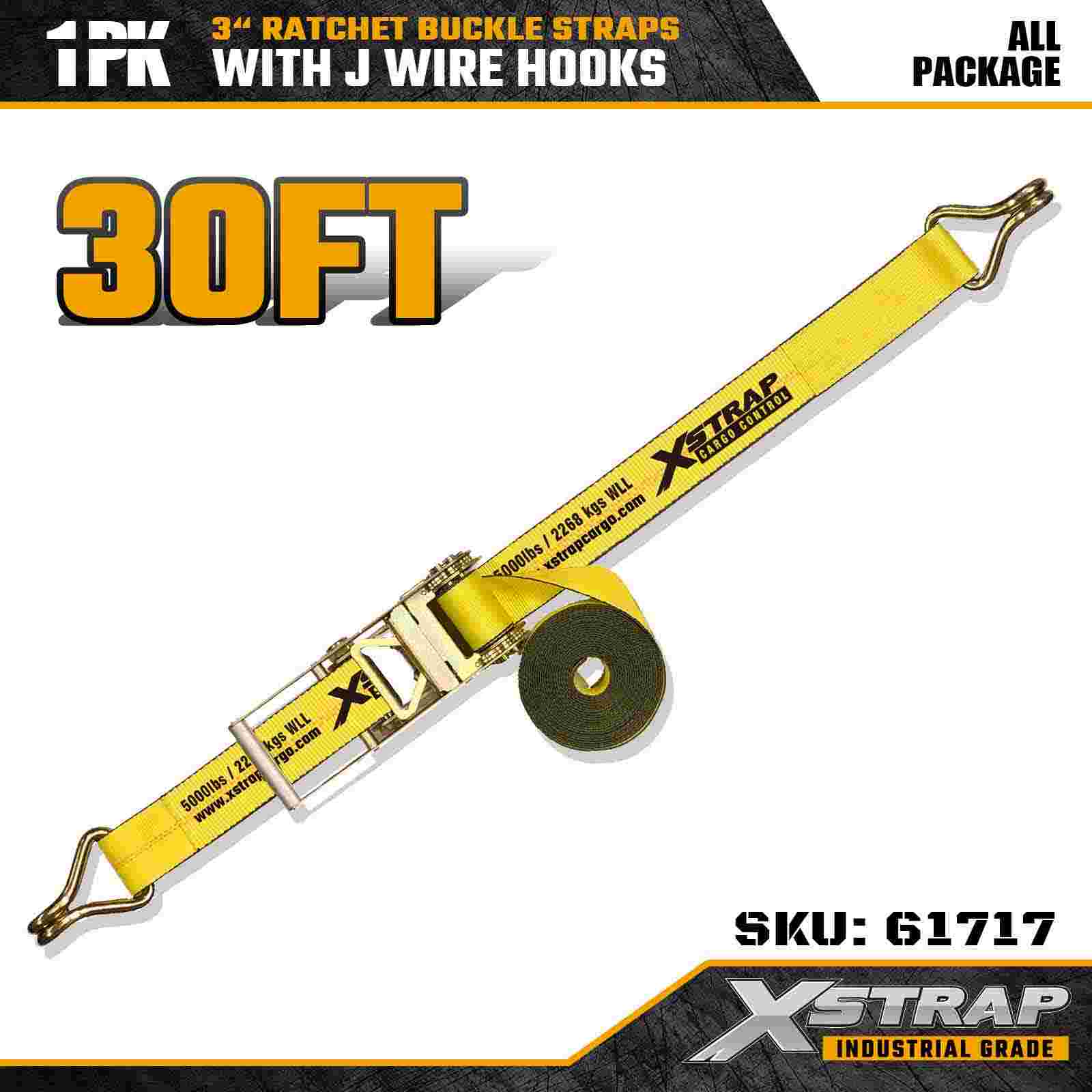 Xstrap 61717 3インチ × 30フィート ラチェット バックル ストラップ (1 パック) は、要求の厳しい貨物用途向けに設計されており、強化されたワイヤー フックと高張力ラチェット システムが特徴です。5,000 ポンドの使用荷重制限と 15,000 ポンドの破断強度を備えたこのストラップは、フラットベッド、機器輸送、および産業物流に信頼できるパフォーマンスを提供します。