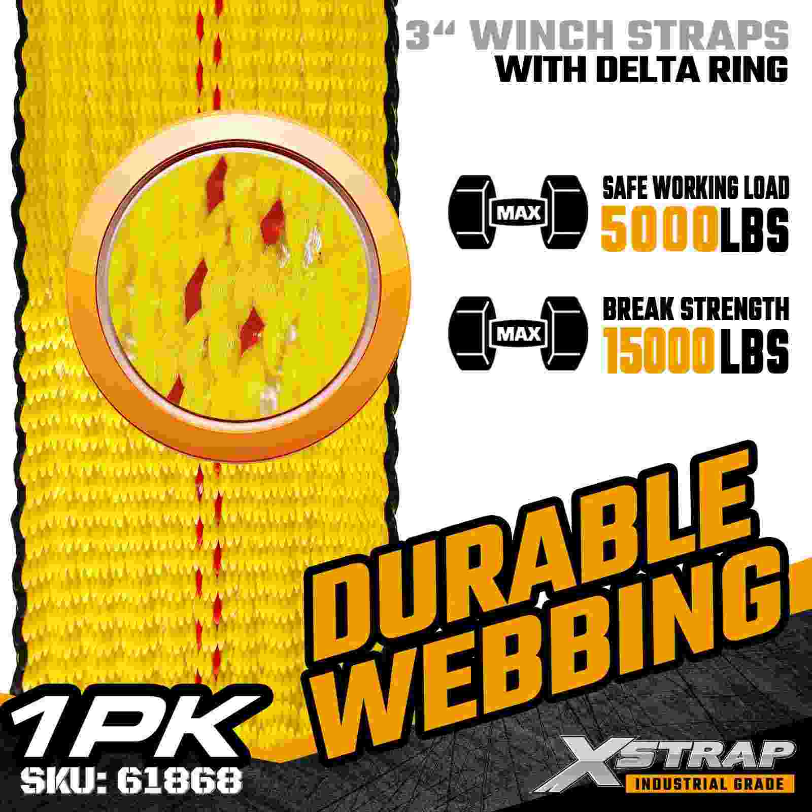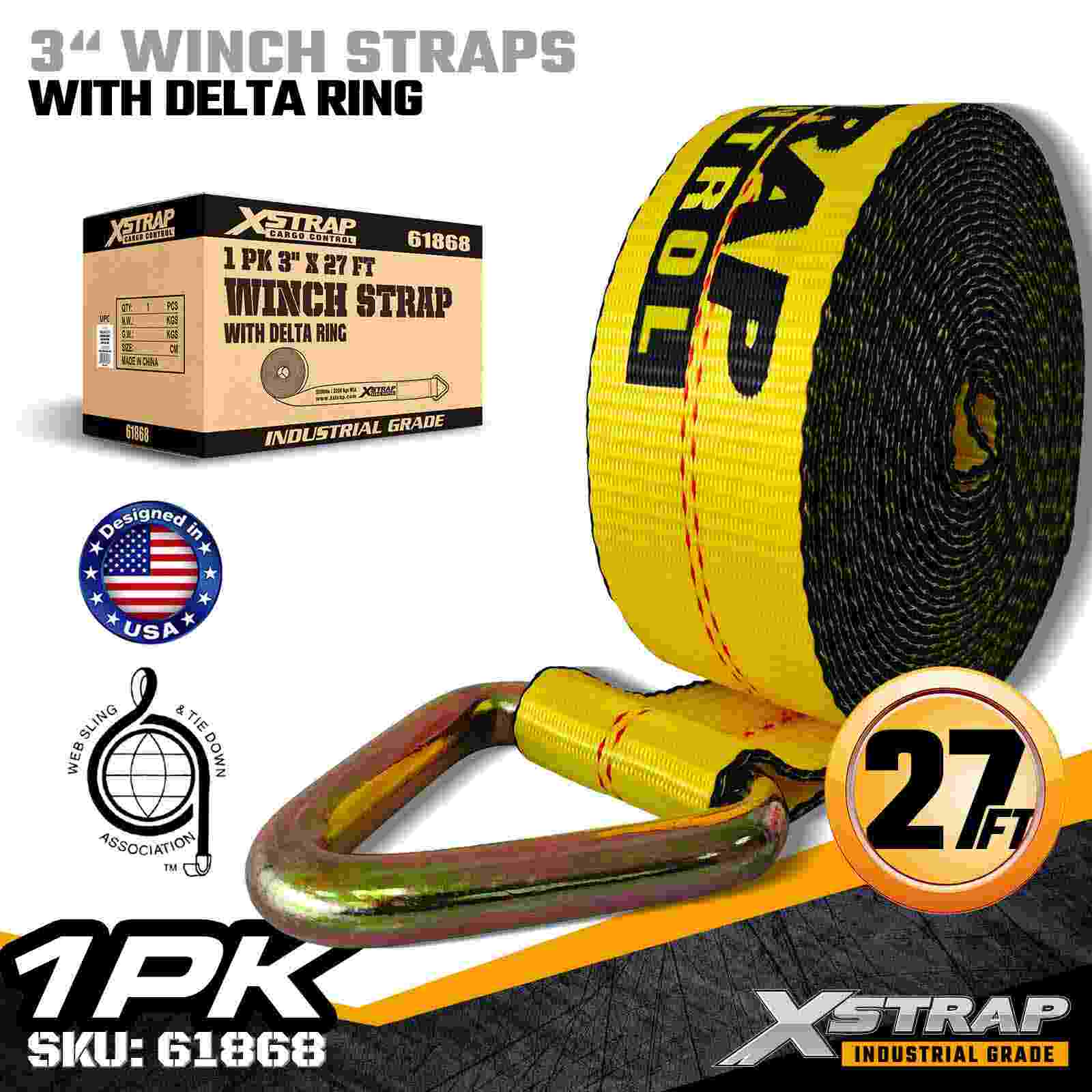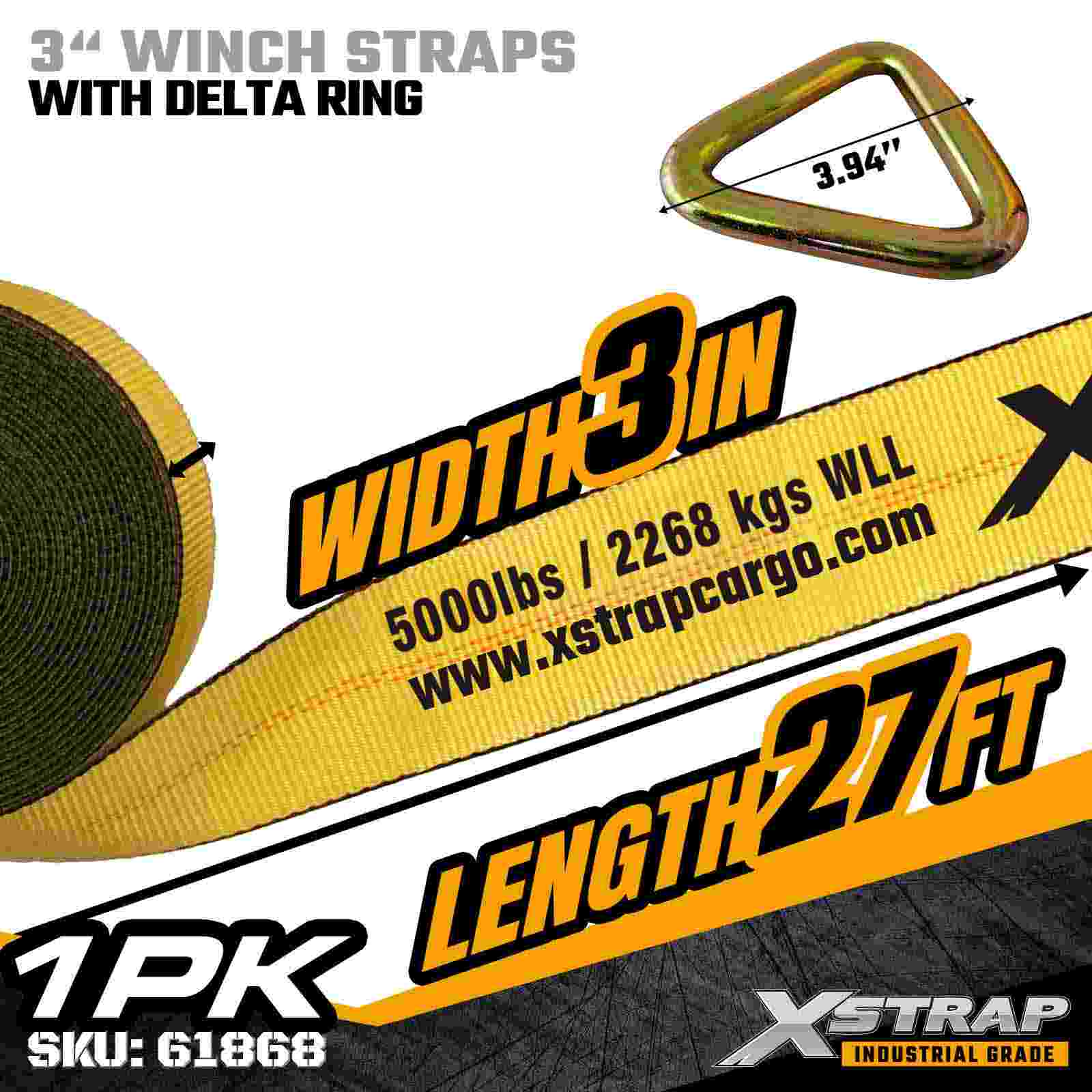 3 インチ × 27 フィートの標準ウインチ ストラップ、デルタ リング付き