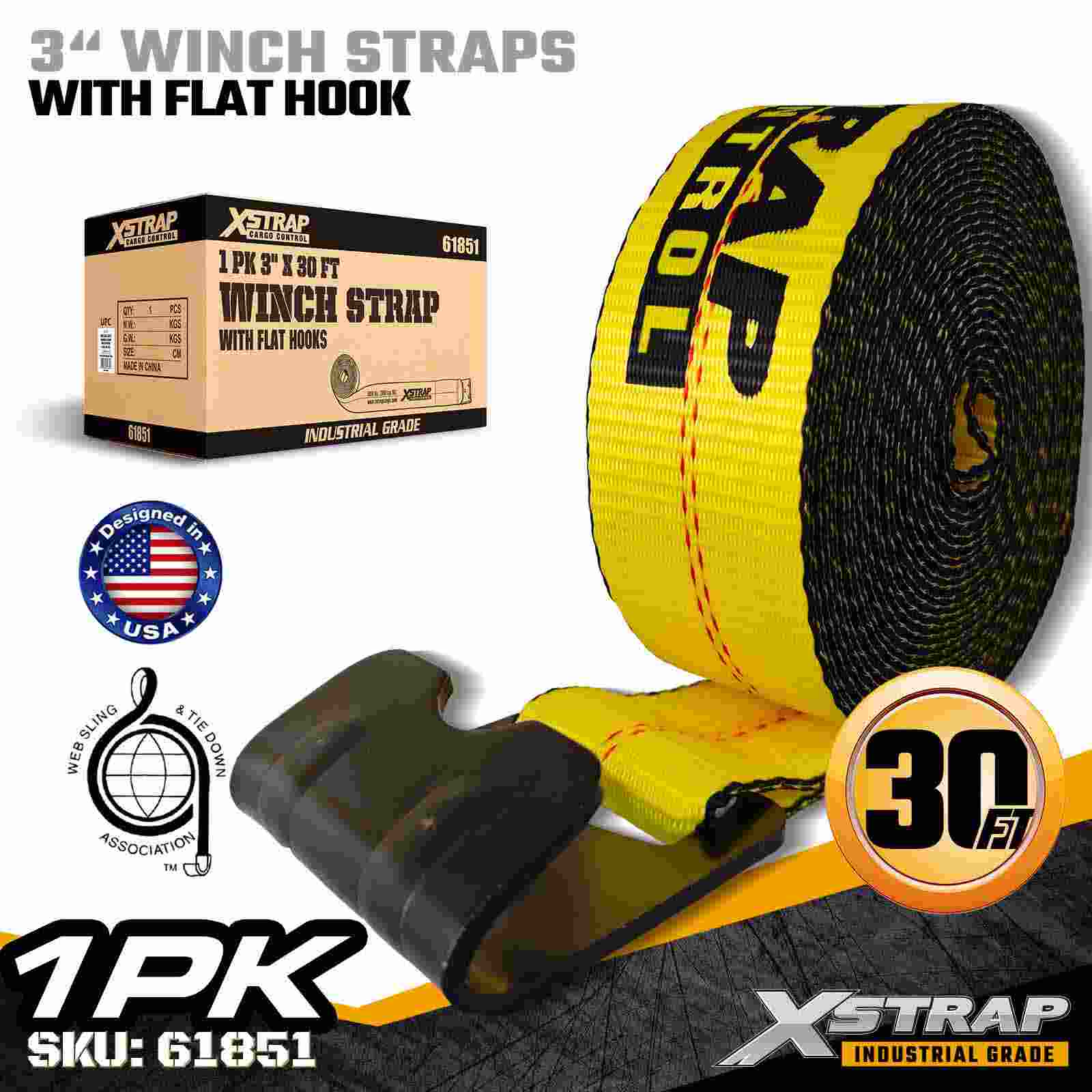 - 特大貨物をカバーするための延長された長さ 30 フィート: この 30 フィートのウインチ ストラップは、幅広、高さ、または不規則な形状の貨物を固定するために最大の到達距離を提供し、追加の延長ストラップの必要性を減らします。