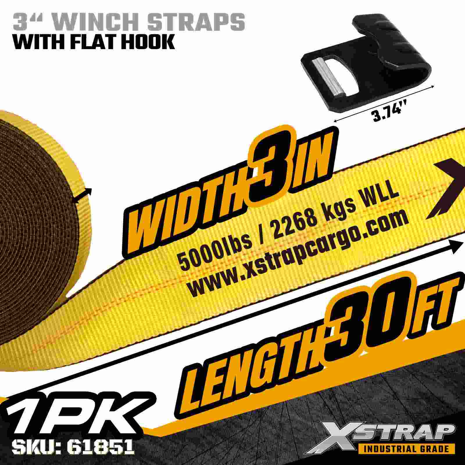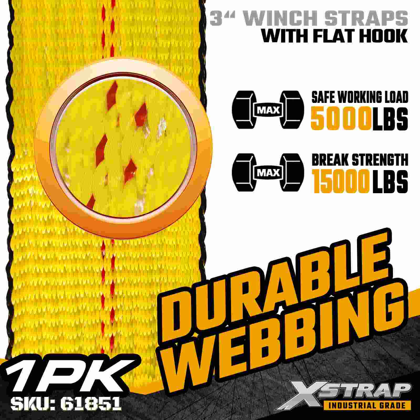Xstrap 61851 3 インチ × 30 フィートの標準ウインチ ストラップは、フラットベッド トレーラーや大容量輸送用に設計された頑丈な貨物固定ストラップです。強化されたフラット フックと幅広の 3 インチのポリエステル ウェビングを備えたこの 3 インチのウインチ ストラップは、5,000 ポンドの作業荷重制限と 15,000 ポンドの破断強度を実現します。木材、鋼材、鋼材などの固定に最適です。要求の厳しい運搬作業中の機械や産業用貨物の輸送に使用されます。