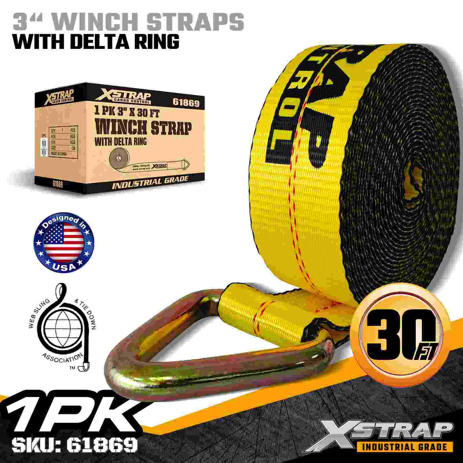 デルタリング付き 3 インチ × 30 フィートの標準ウインチストラップ