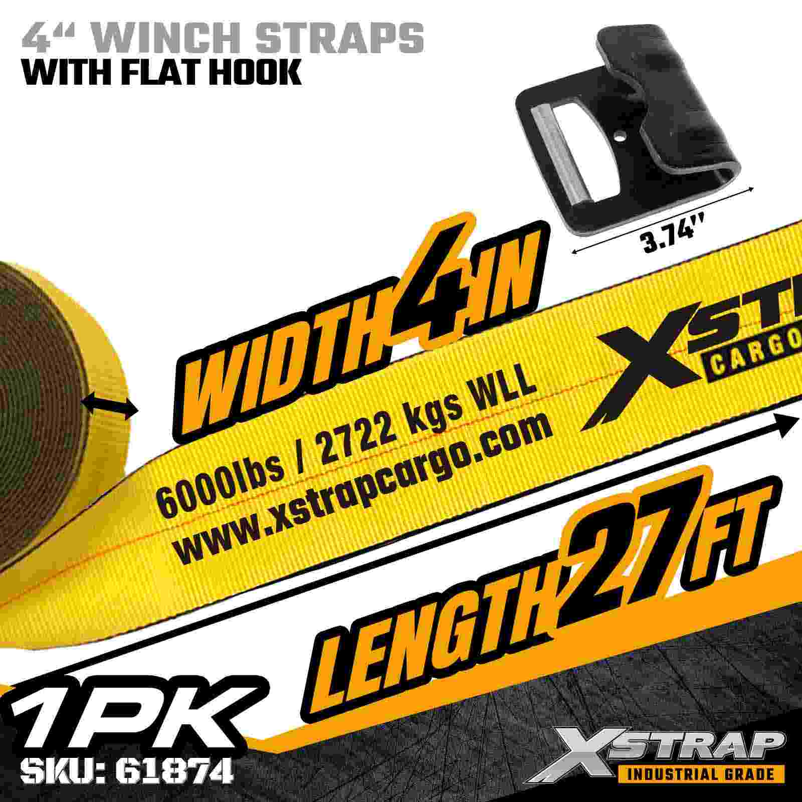 4 インチ × 27 フィートの標準ウインチ ストラップ、フラット フック付き