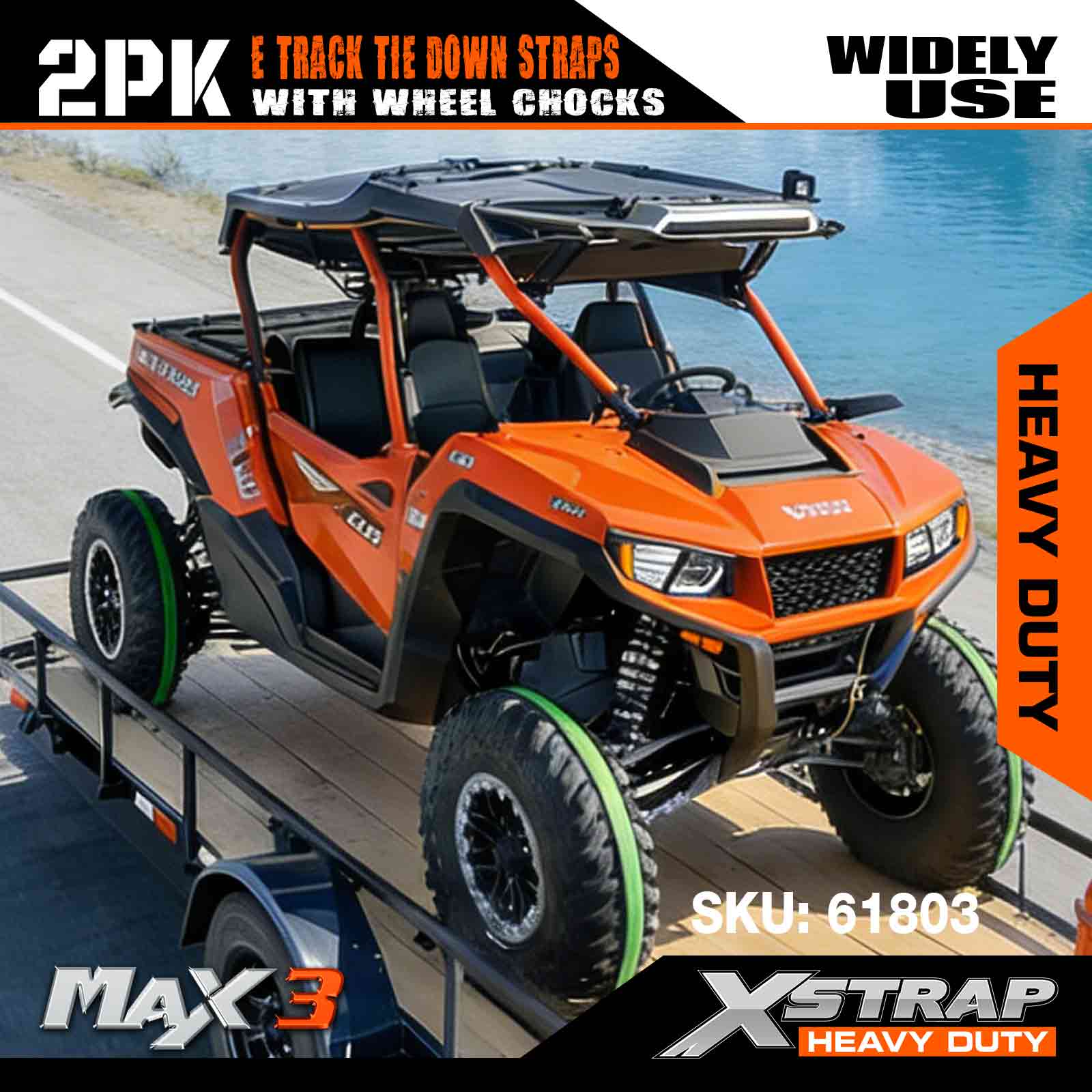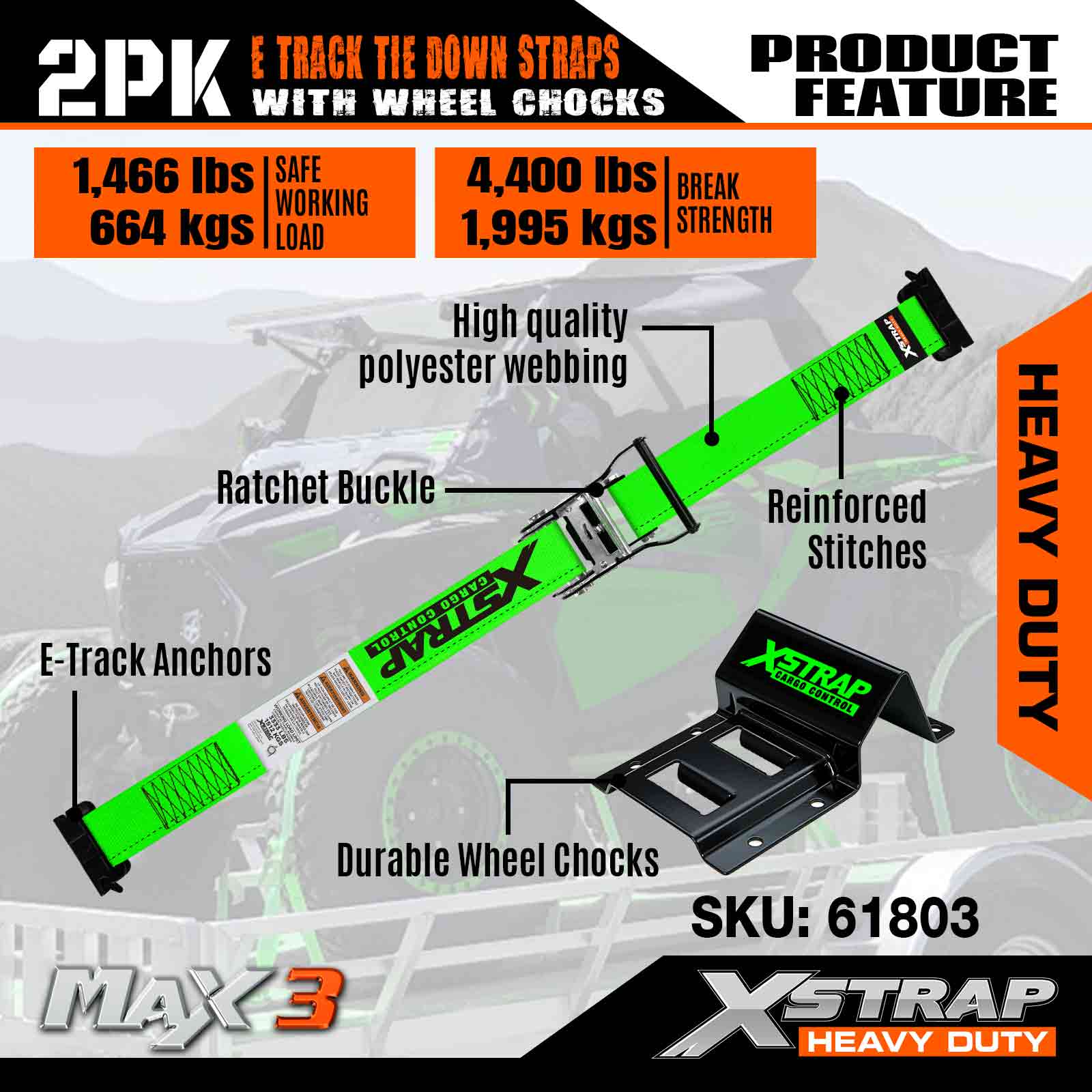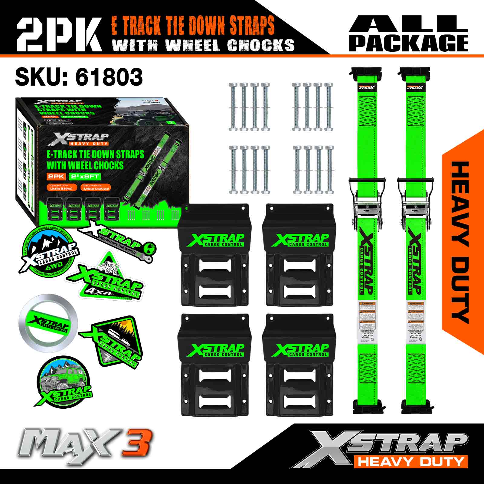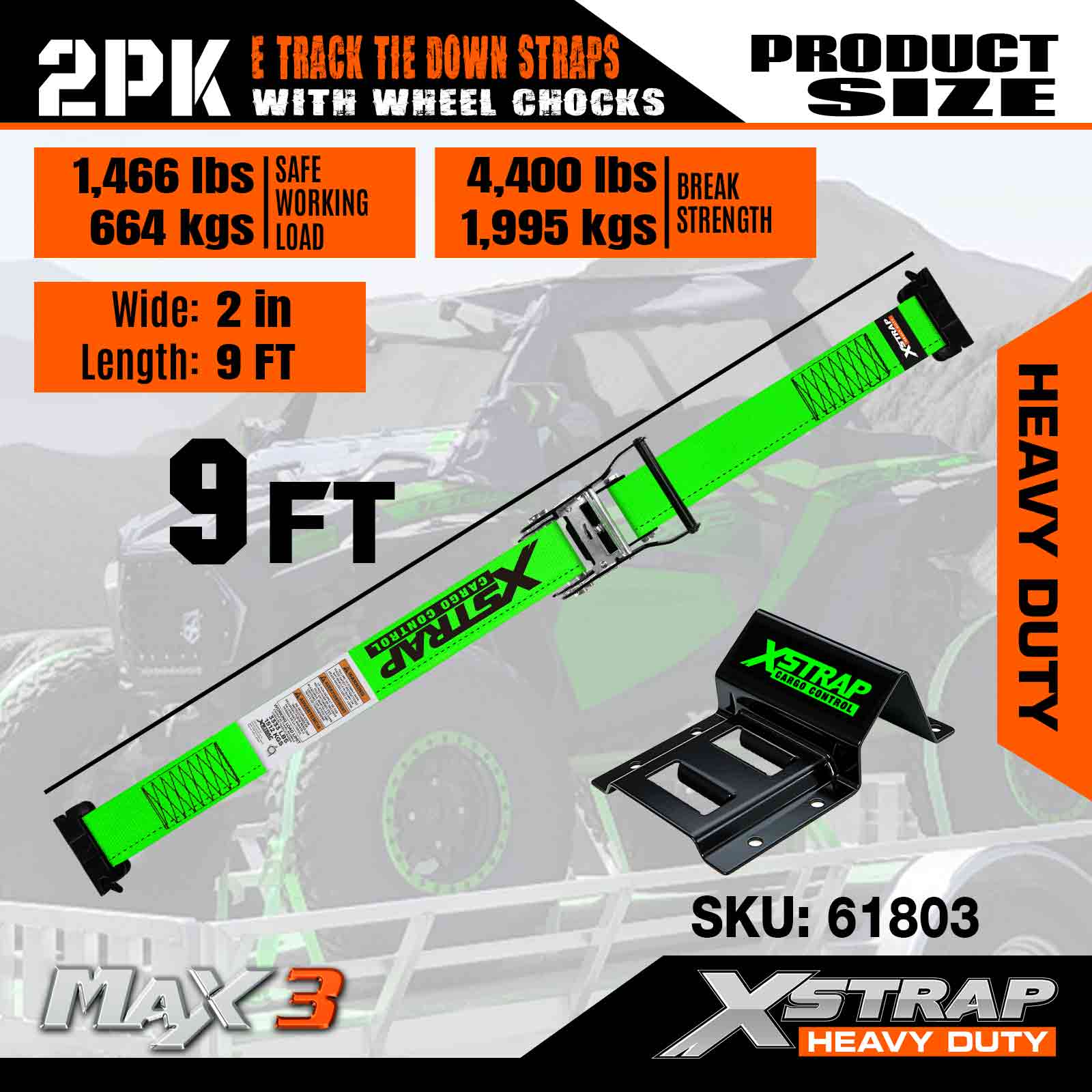 Xstrap E-Track ホイールチョックタイダウンキット、2インチ*9フィートの高耐久ストラップ、カートレーラーUTV ATV用、タイヤストラップ付きラチェットタイダウン (2パック)