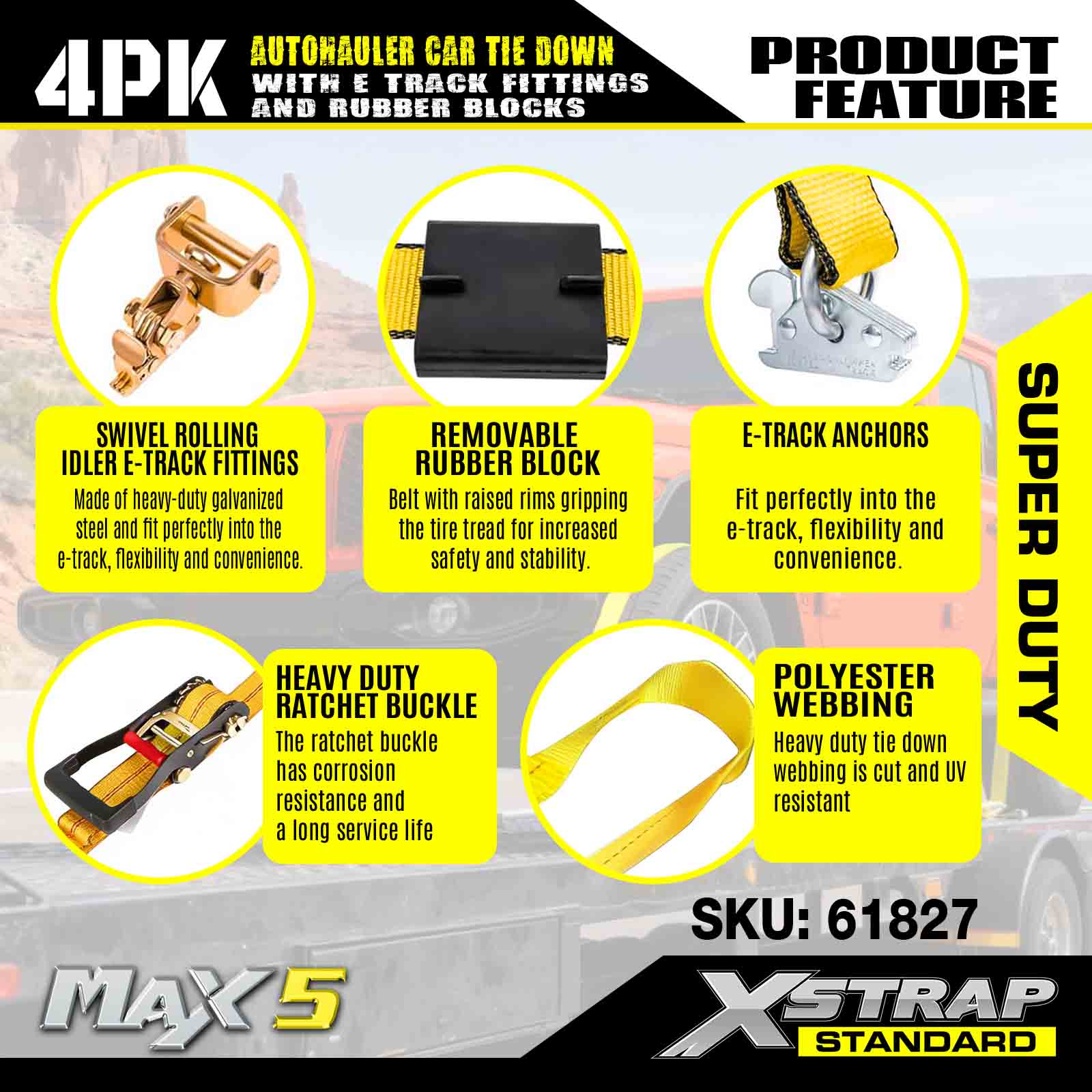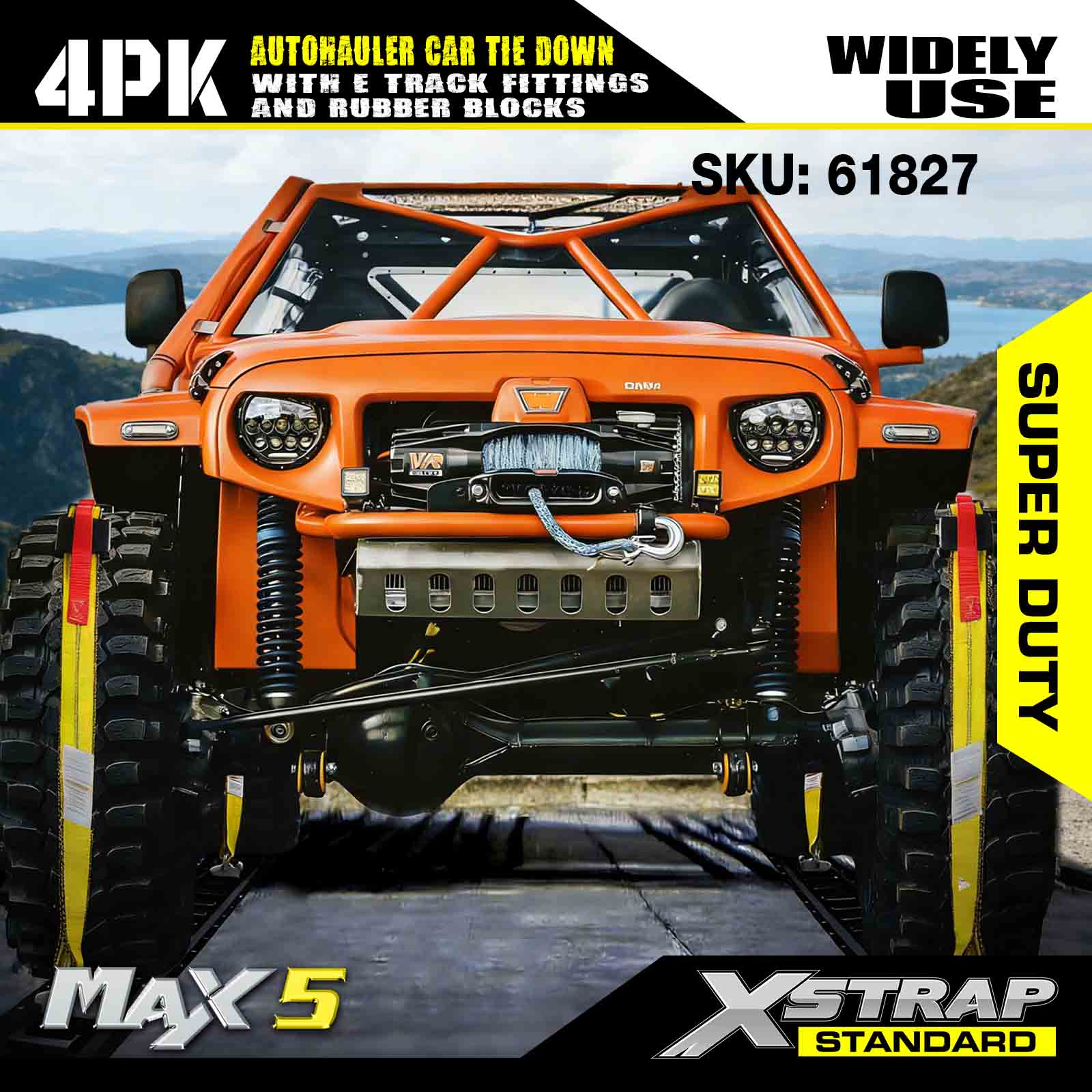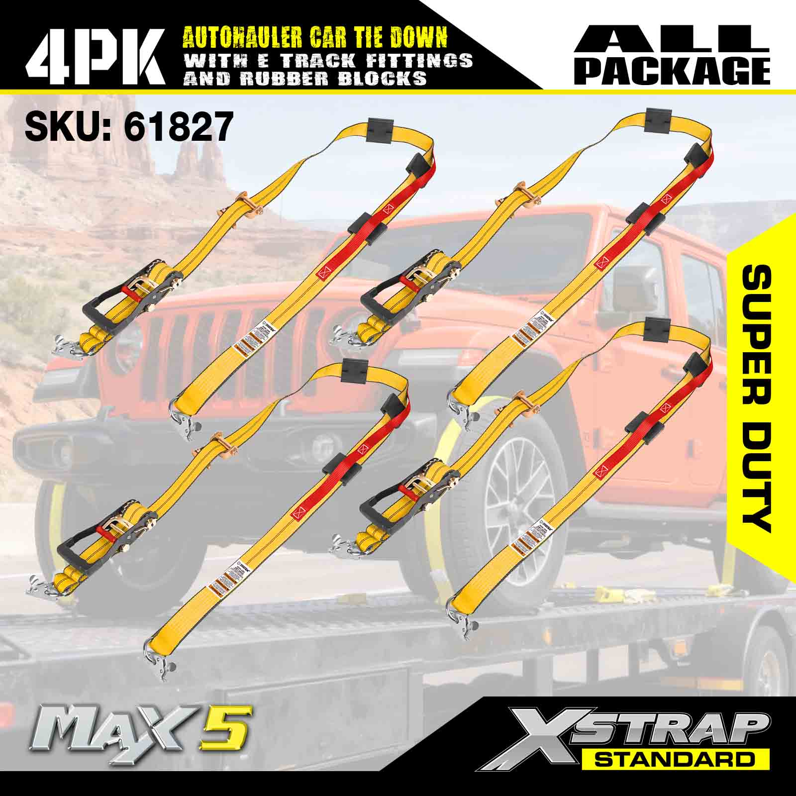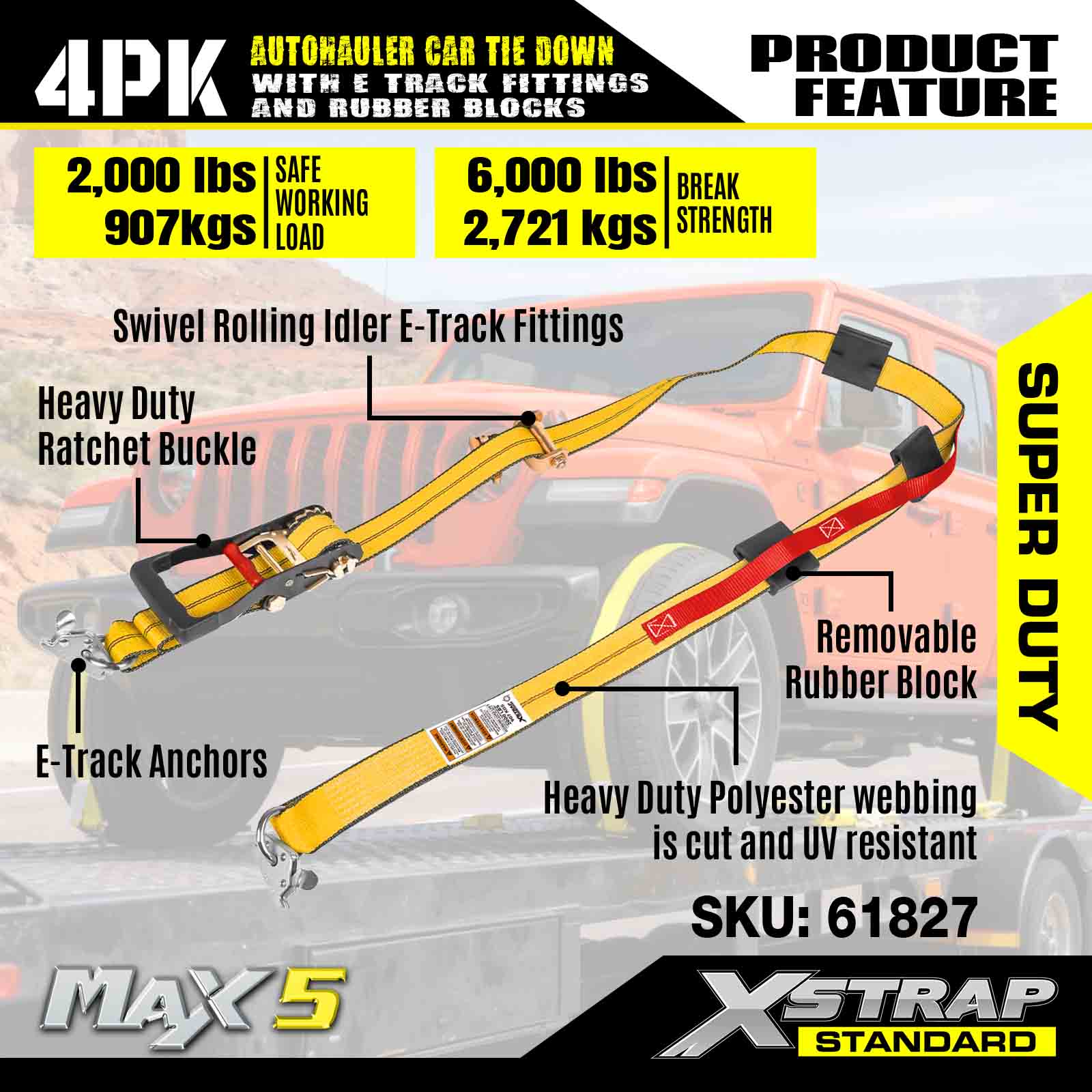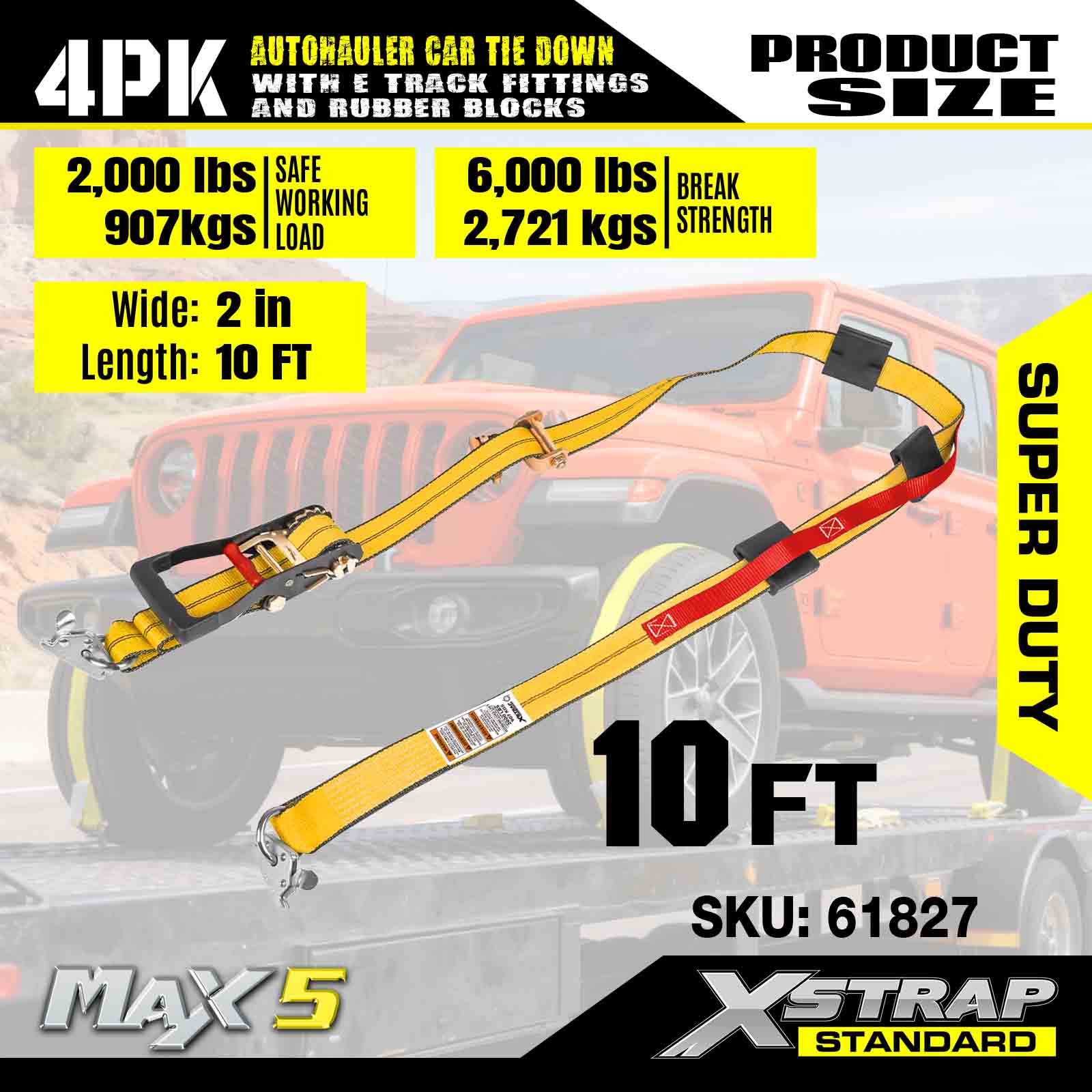 Xstrap Xstrap E トラック タイヤ ストラップ トレーラー用 高耐久 2インチ x 10フィート 自動車運搬用ストラップ - 6,000ポンド 保証破壊強度 - (4) プレミアム車両タイダウンキット ゴムブロック付き ホイールタイダウン トラック、UTV用