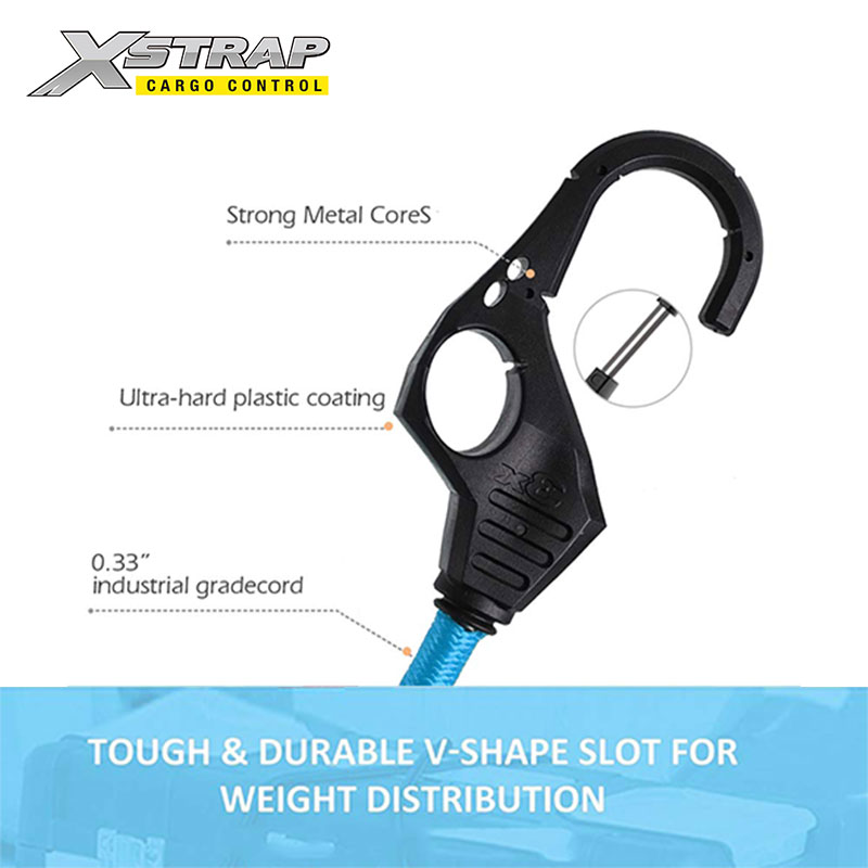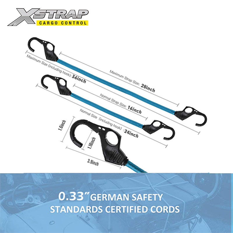 フィンガーホールフック付きのバンジーコードは、優れた耐紫外線性の交差織りゴムとラテックスで作られており、毎日の使用やさまざまな気候によっても薄く磨耗したり壊れたりすることはありません。