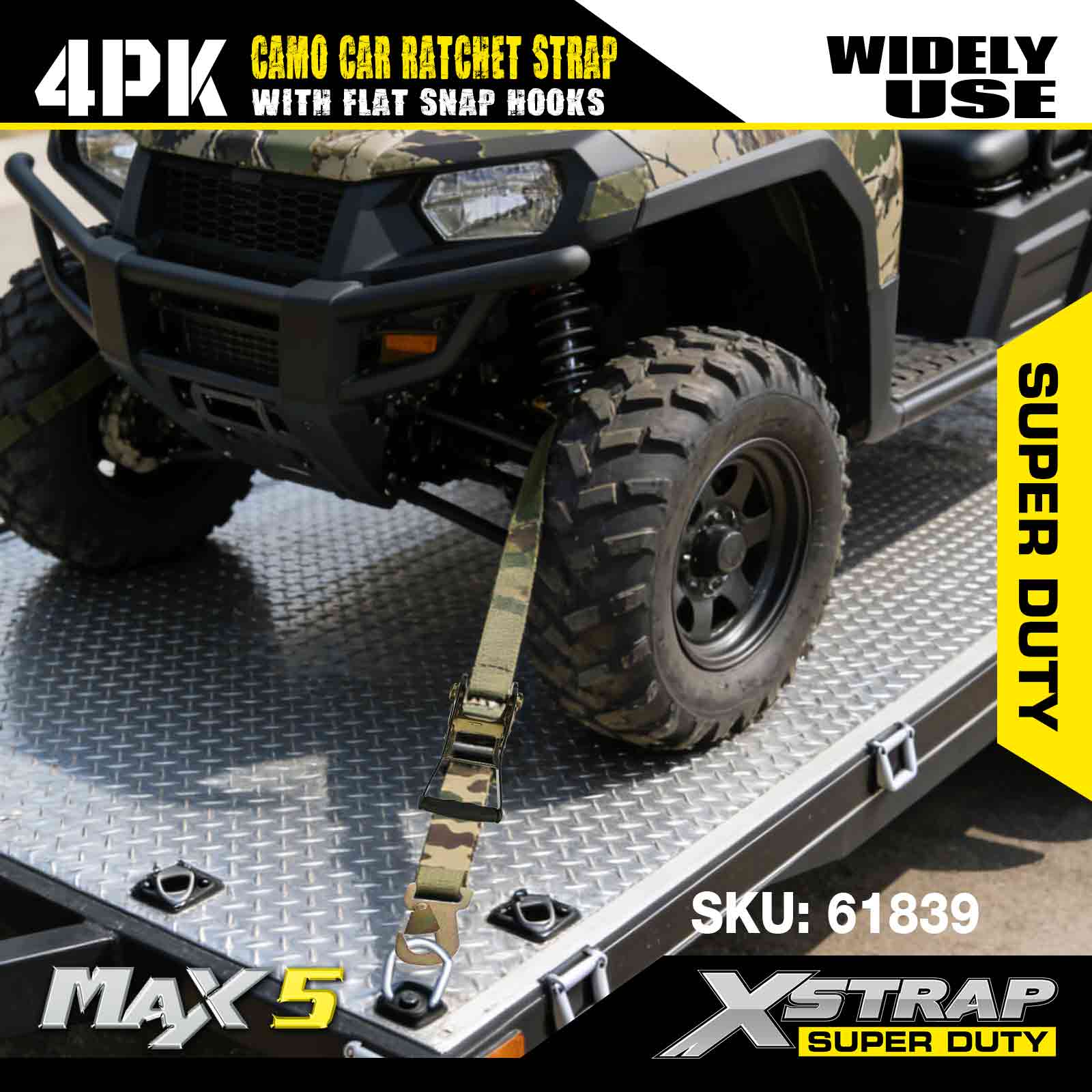 - タイダウン 4 個パック - この 2 x 7 ラチェット ストラップは 4 個パックに入っています。つまり、オートバイ、ATV、その他の自動車などの固定など、より多くの用途に役立つ高品質の自動車用ラチェット ストラップが 4 個入っています。