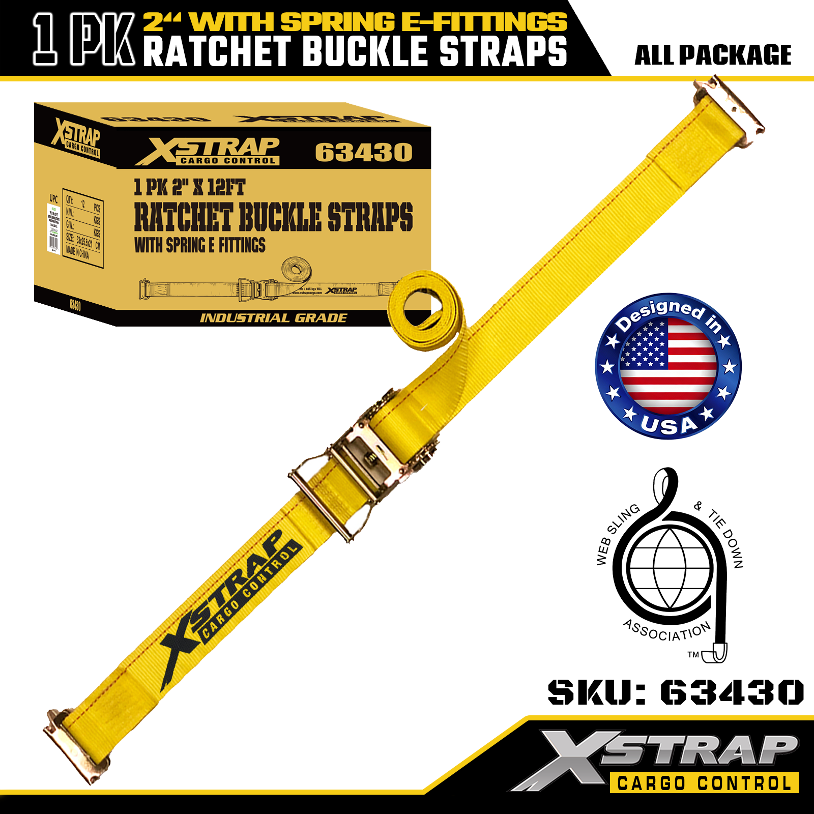2インチ x 12フィート 1PK スプリング E フィッティング付きラチェット バックル ストラップ