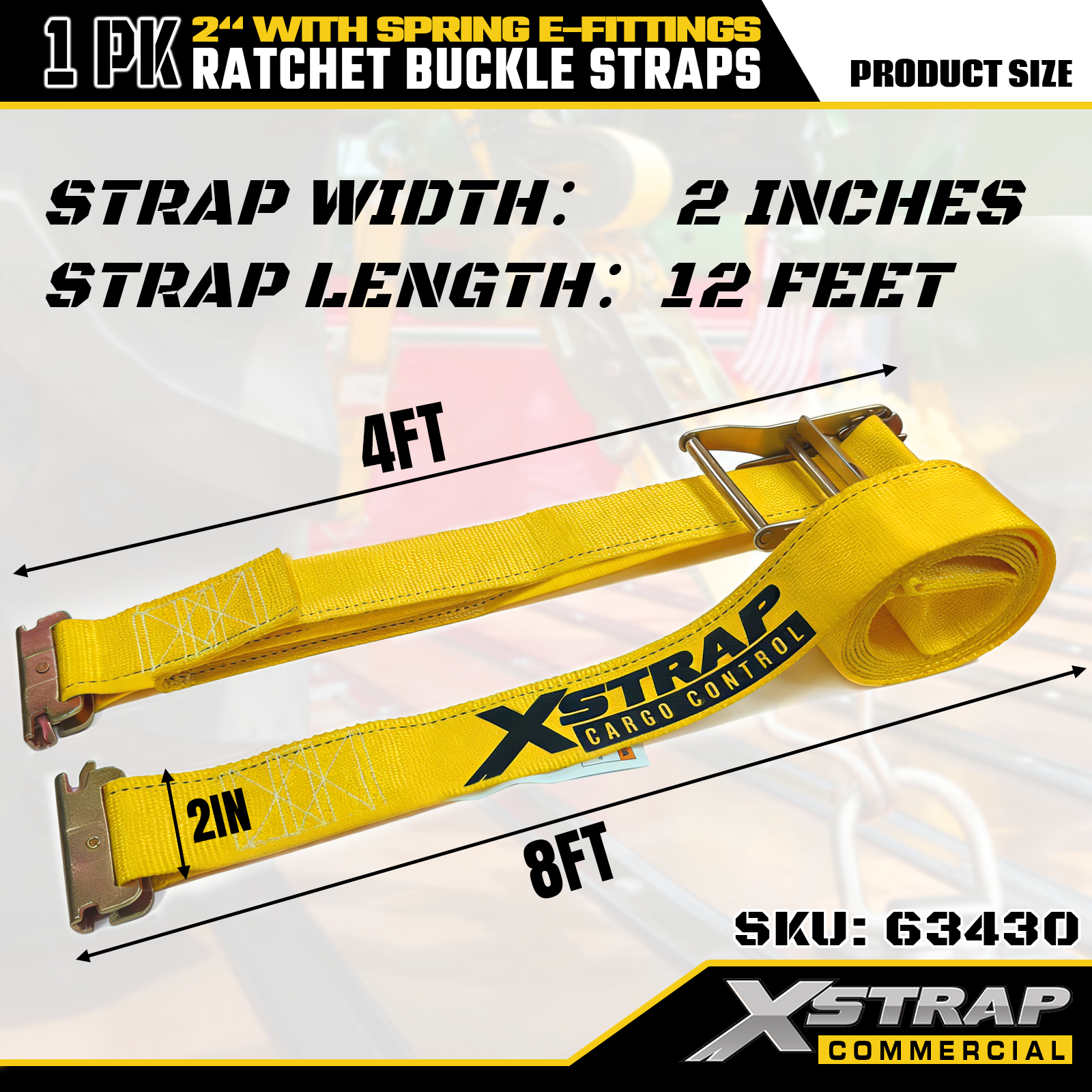 Xstrap 1パック ポリエステルラチェットタイダウンストラップ スプリングEフィッティング付き 2インチ x 12フィート 高耐久貨物固定ストラップ 4401ポンド (1467ポンド) トラック、芝刈り機、ATV用