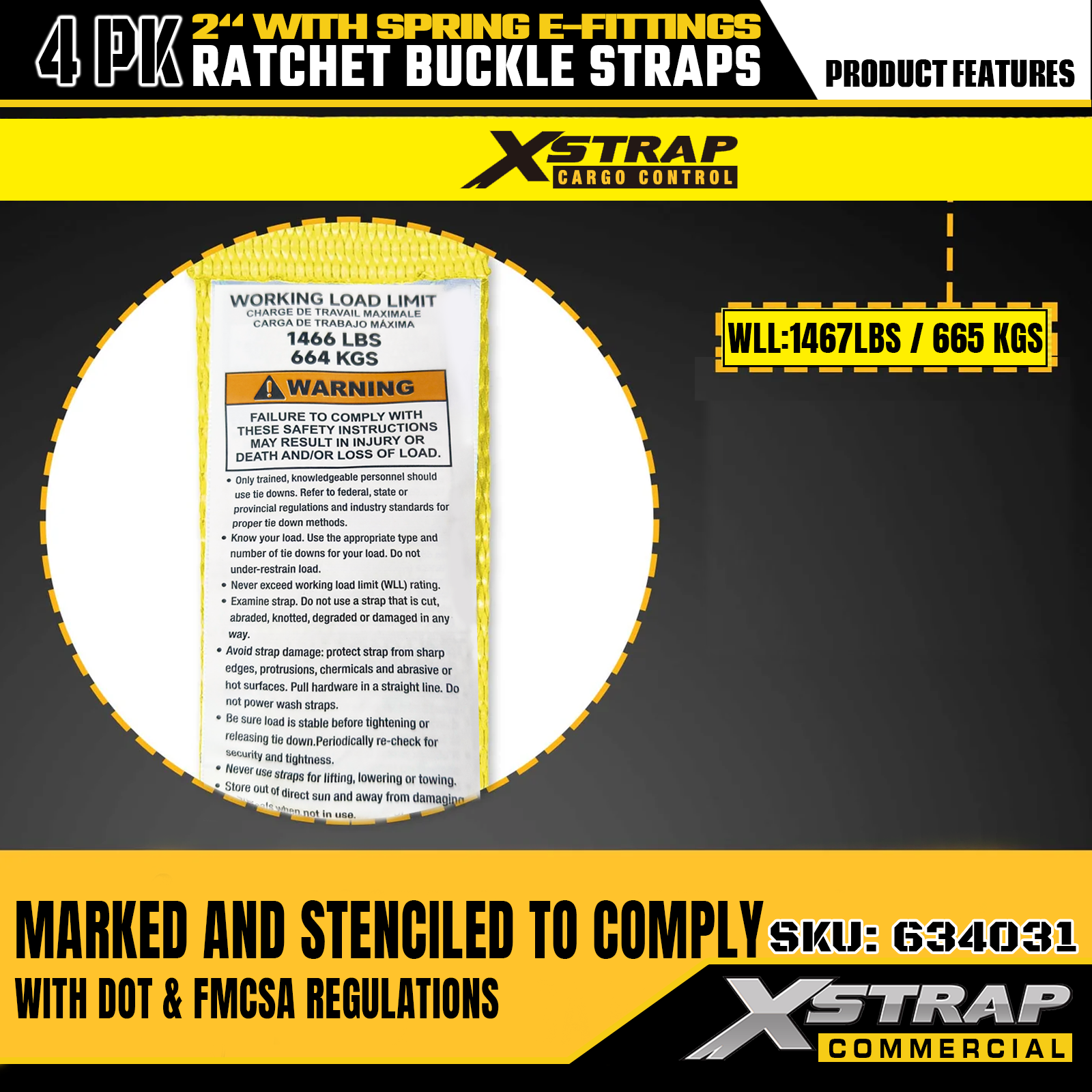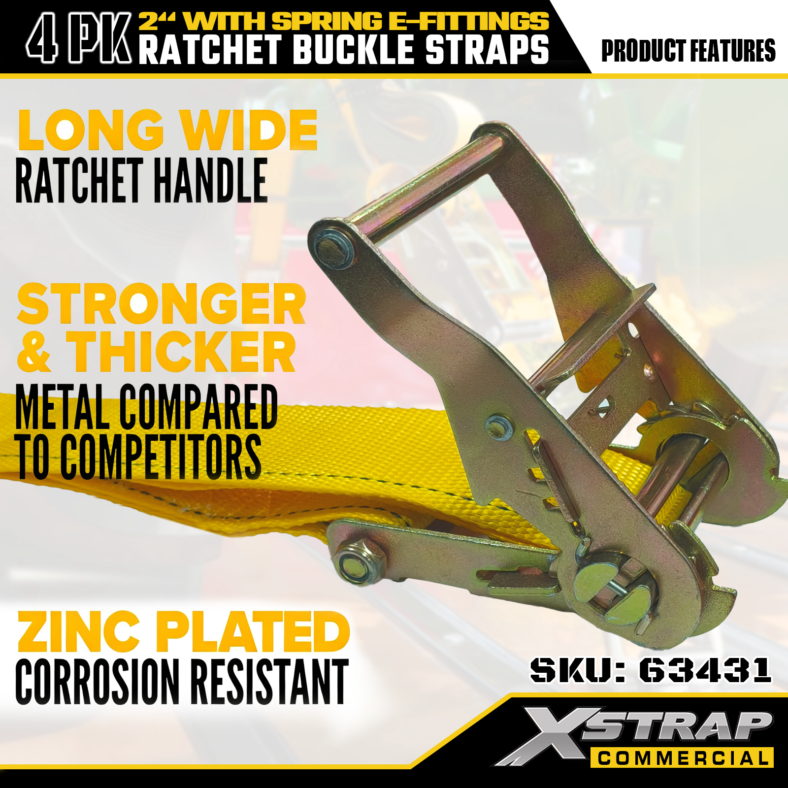 2インチ x 12フィート 4PK スプリング E フィッティング付きラチェット バックル ストラップ