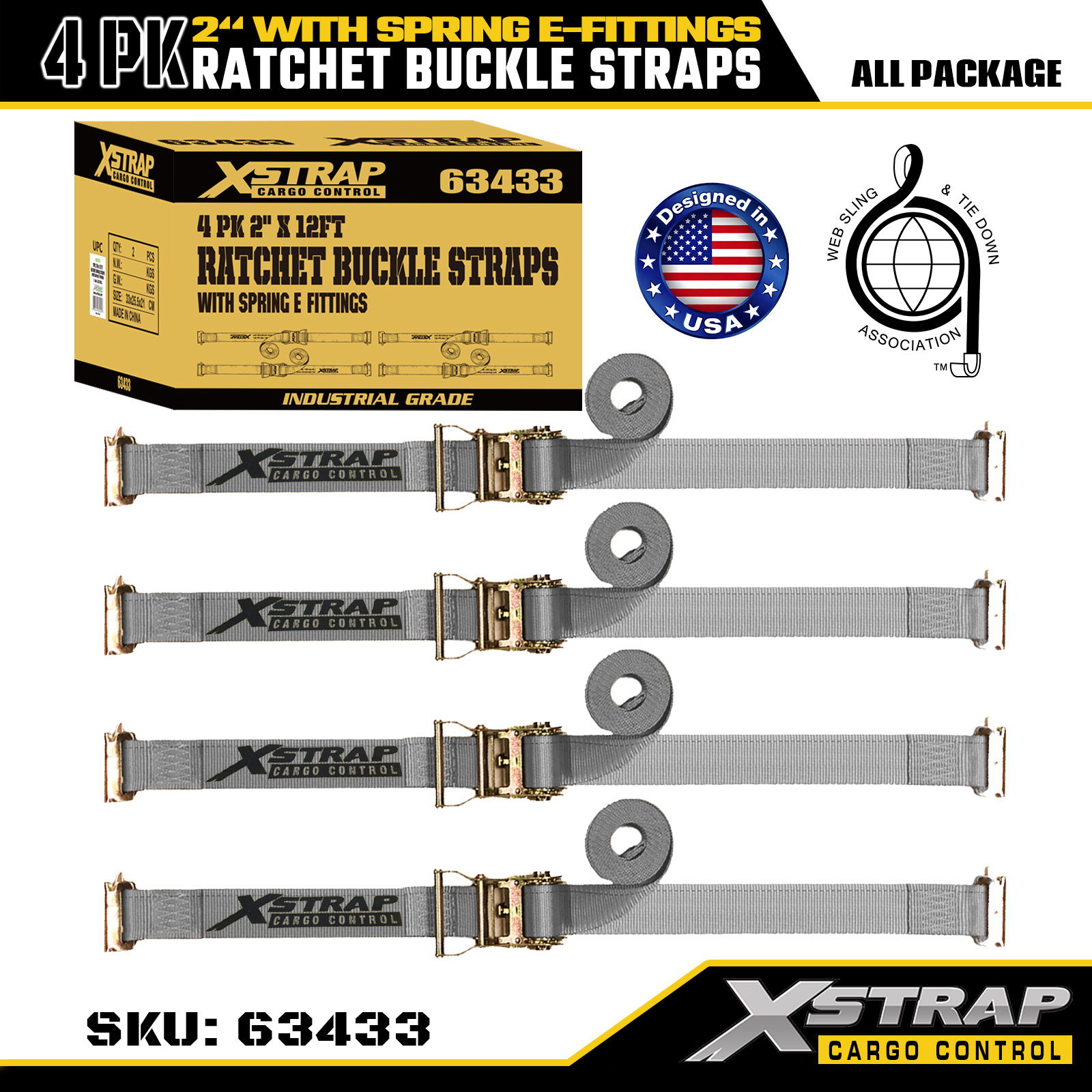 2インチ x 16フィート 4PK スプリング E フィッティング付きラチェット バックル ストラップ