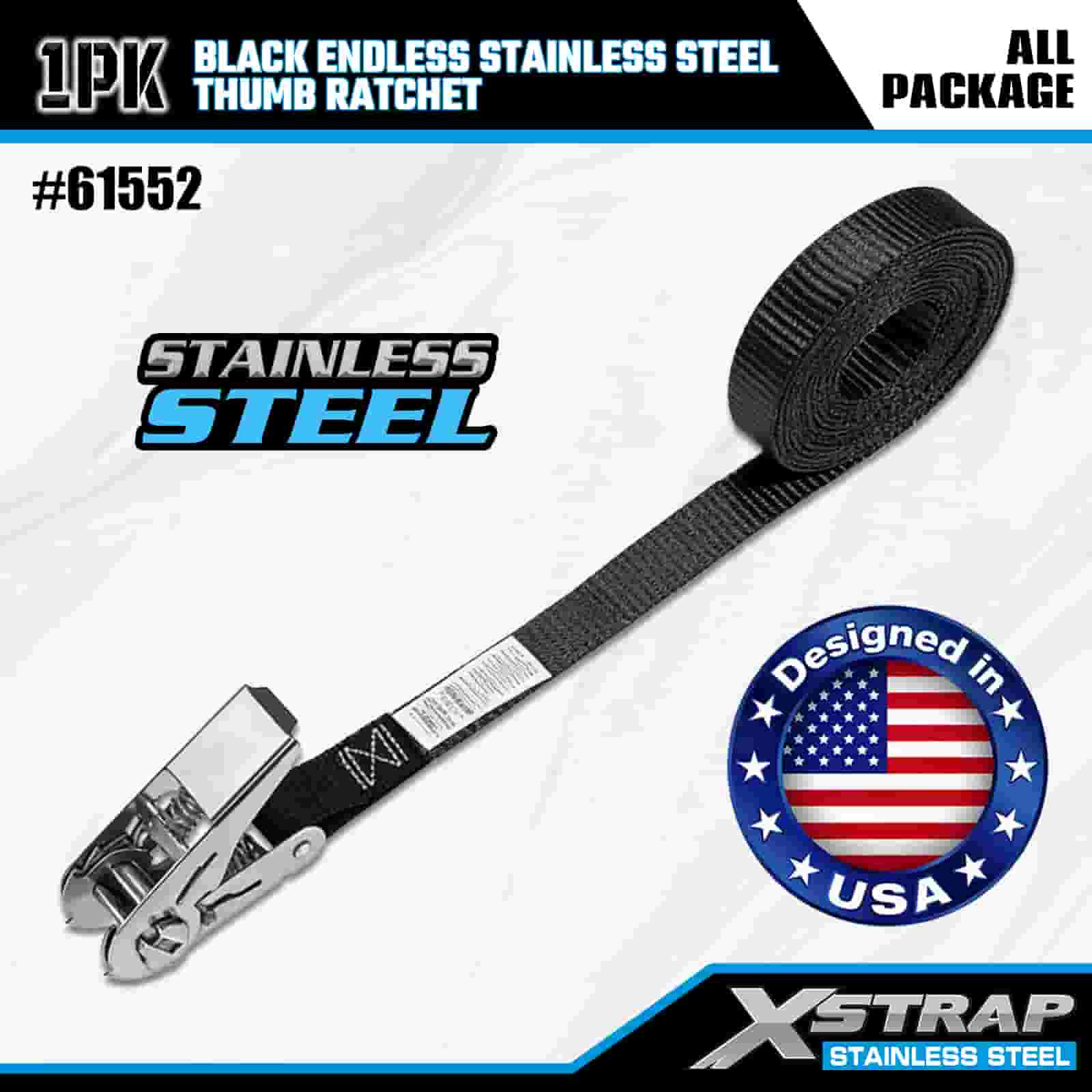 1 インチ x 15 フィート ブラック エンドレス ステンレススチール サム ラチェット