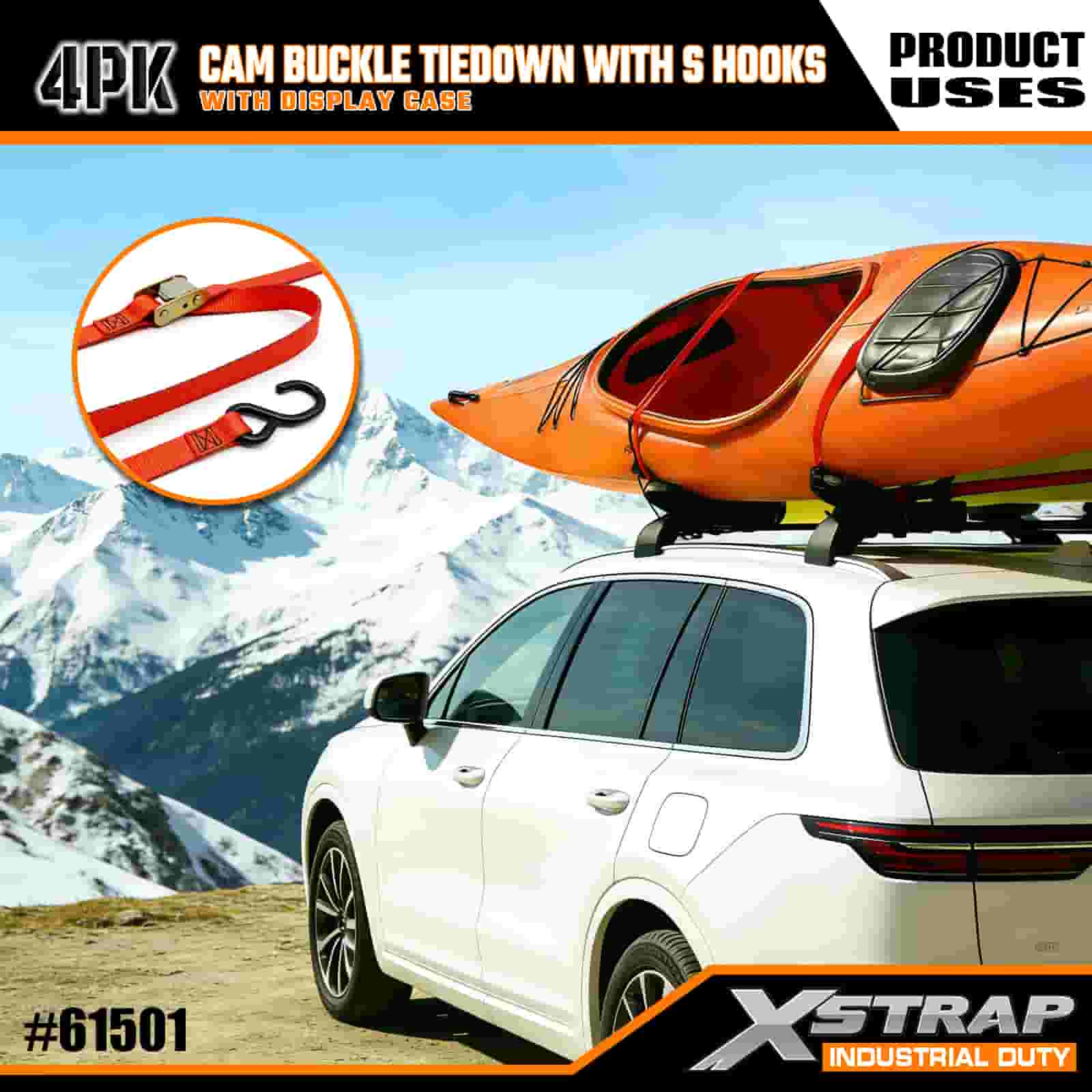 - ディスプレイケース付きの実用的な4個パック: バッチ使用用に4個セット(ディスプレイパッケージ付き)で販売されており、各ストラップのサイズは幅2インチ×長さ6フィートで、カヤック、アウトドアギア、貨物などのアイテムを固定するのに最適です。