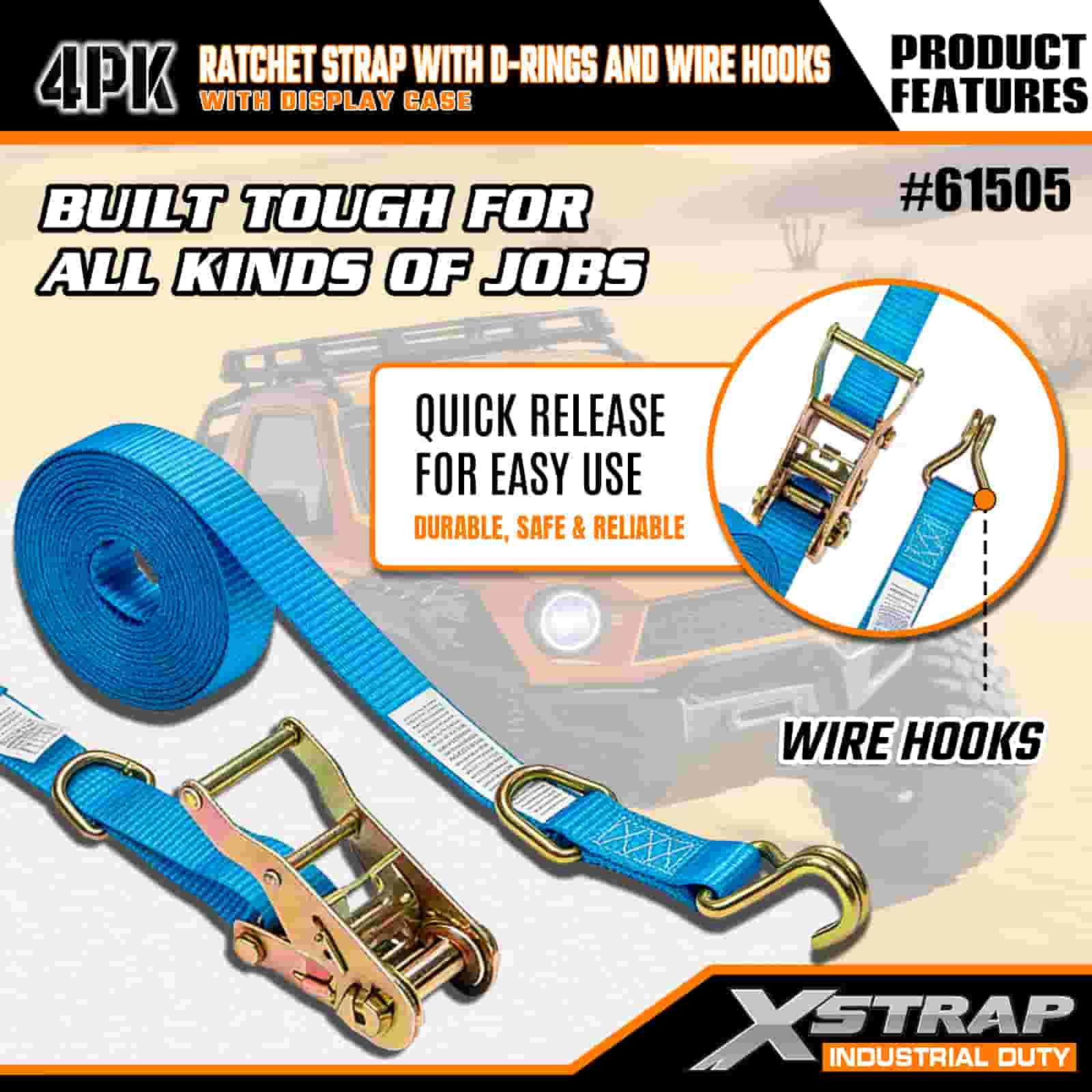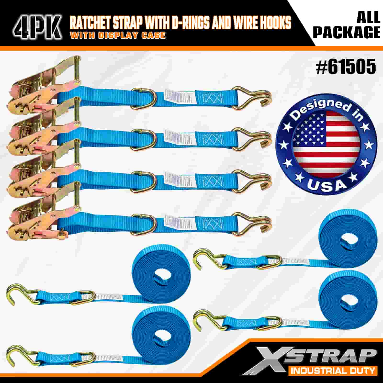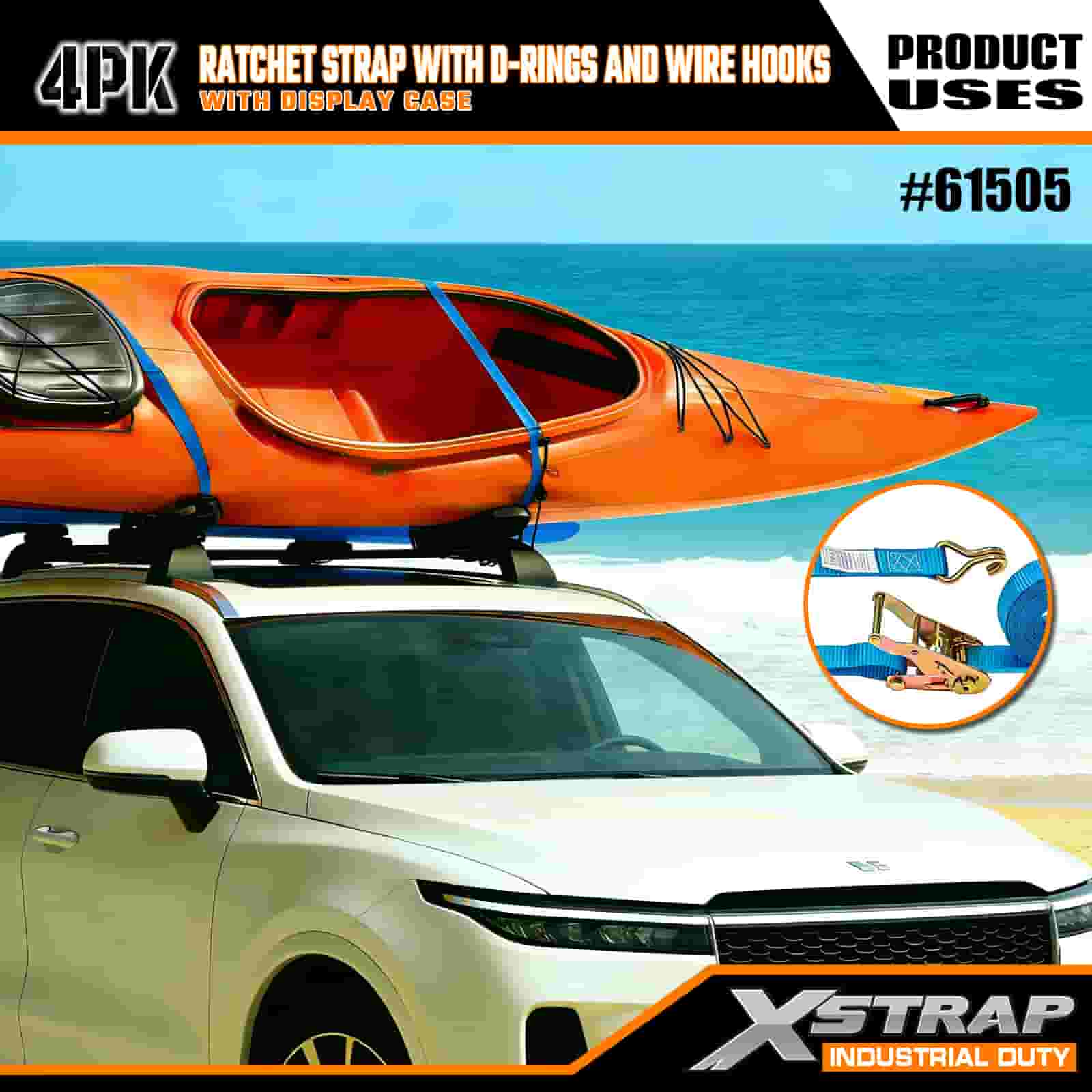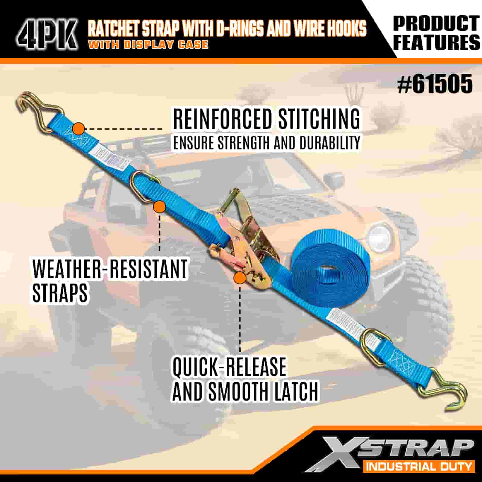 - ディスプレイケース付きの実用的な4個パック: 一括使用用に4個セット(ディスプレイパッケージ付き)で販売されており、各ストラップのサイズは幅1インチ×長さ15フィートで、カヤック、アウトドア用品、重い荷物などのアイテムを固定するのに最適です。