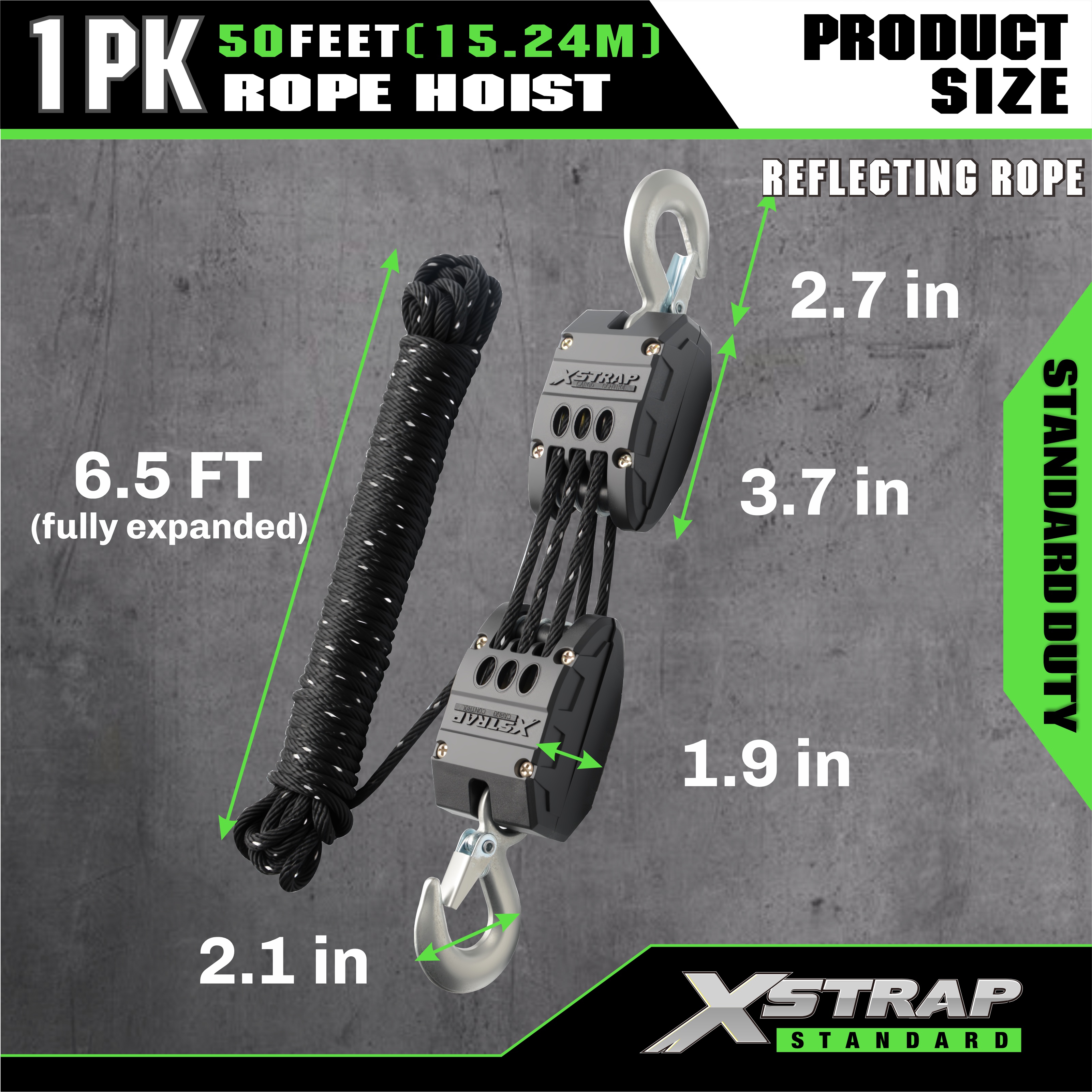 XSTRAP AHLT0003-反射ブラック ロープ ホイスト プーリー システム 1000LB