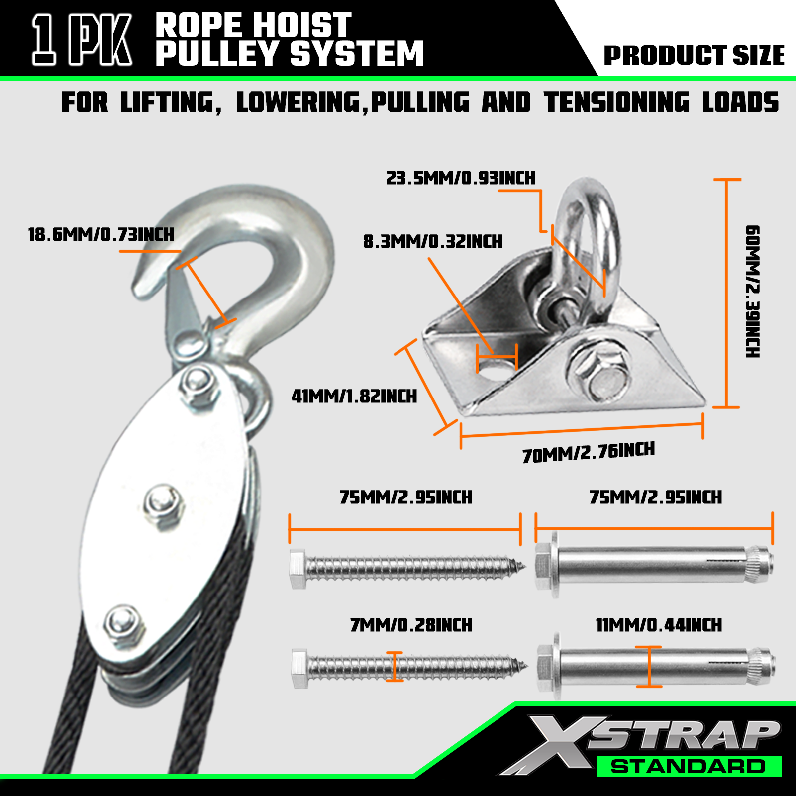 - 重い耐荷重:安全作業荷重は1000ポンド、破壊強度は2000ポンドです。ロープホイストは、重い物体と軽い物体を同時に持ち上げるのに役立ちます。過度な負荷による破損の心配がありません。