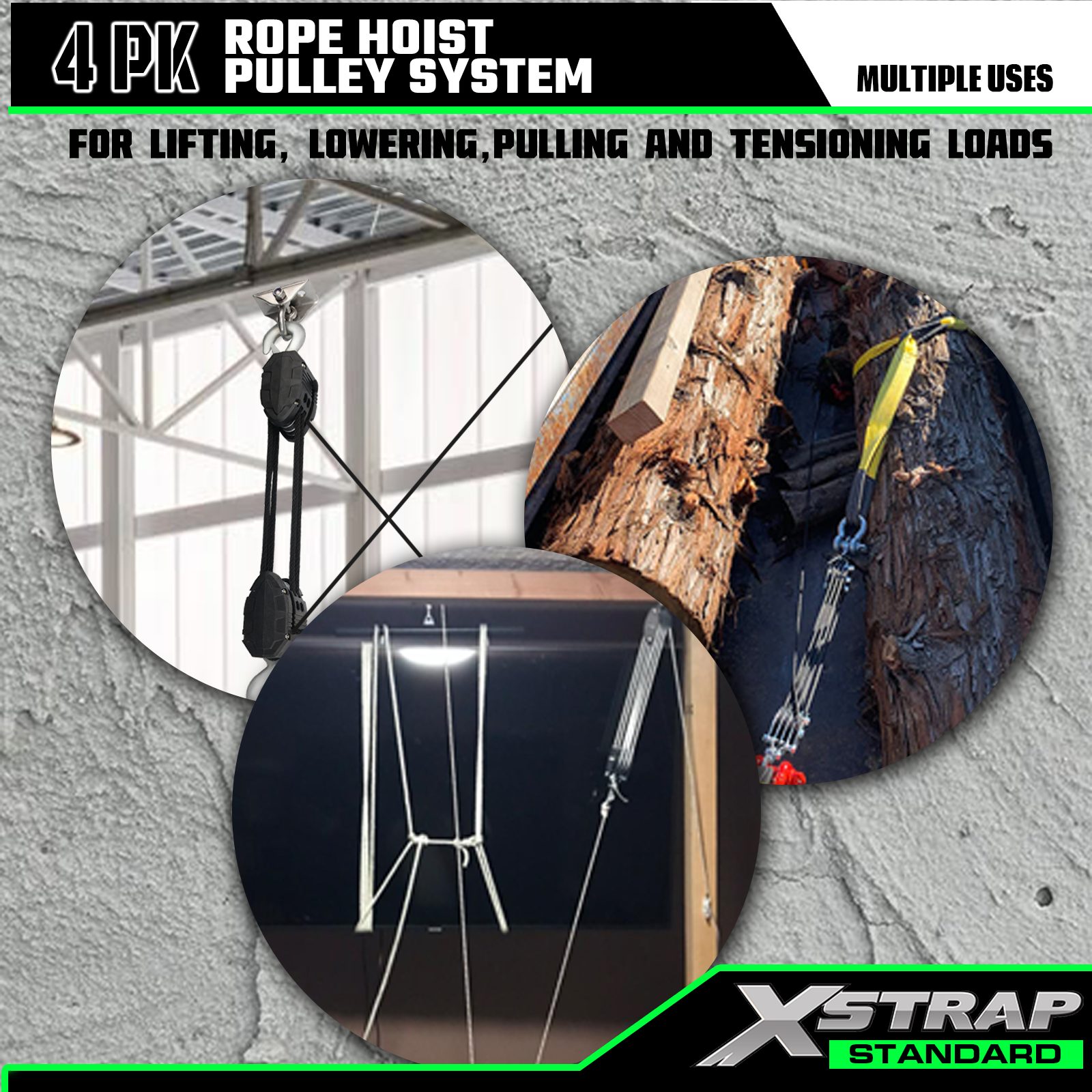 Xstrap AHLT0005 50 フィート ロープ ホイスト プーリー システム 1000LB