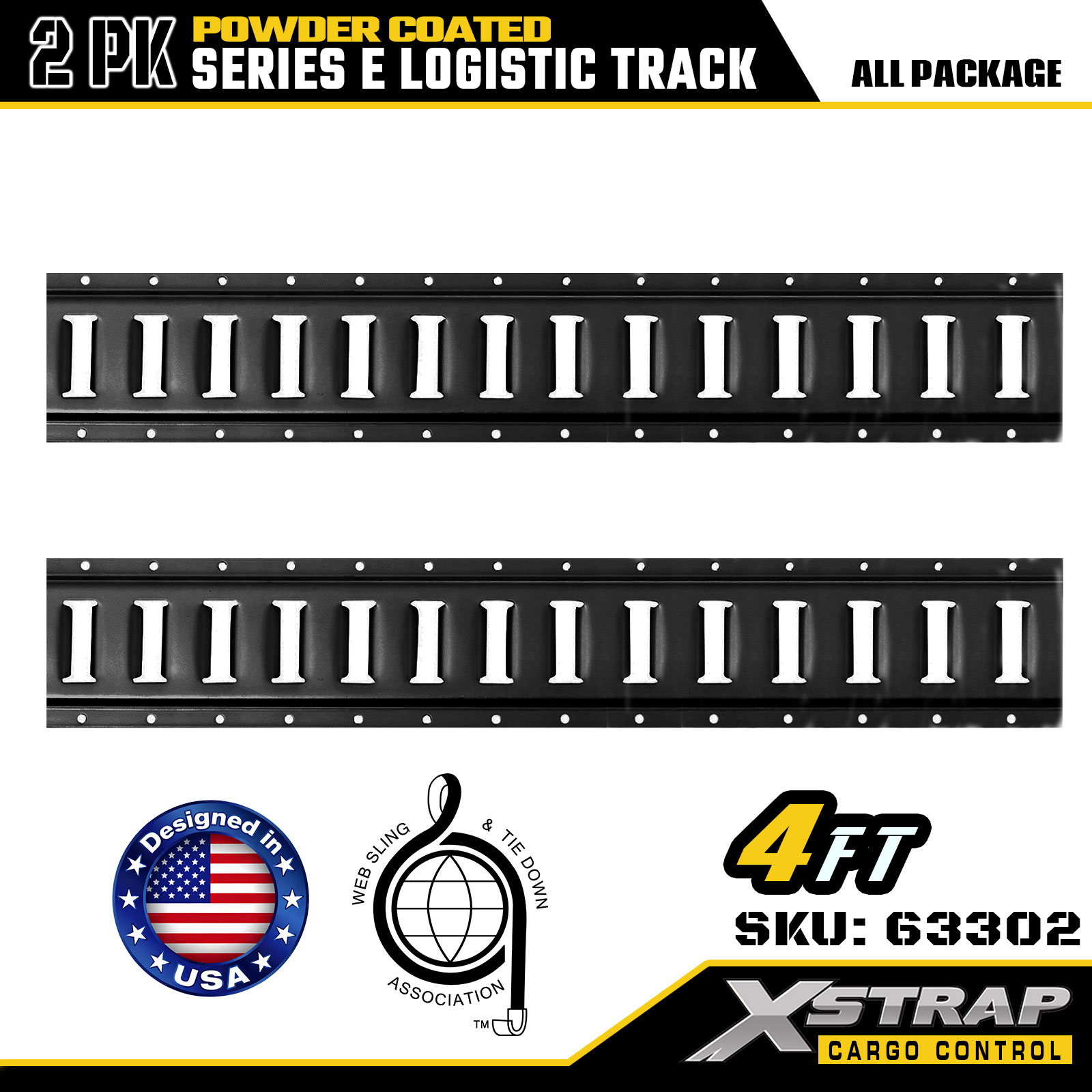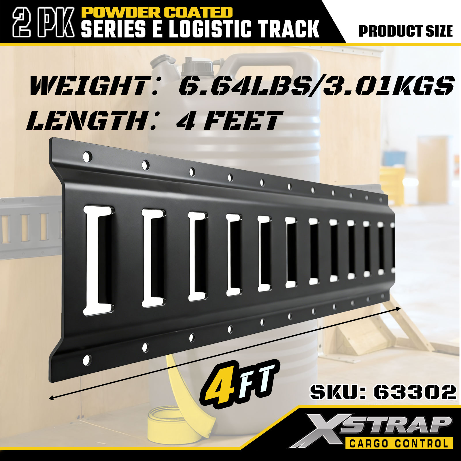 Xstrap 63302 4フィート グレー E ロジスティック トラック - パウダーコート付き 12 ゲージ スチール、容量 6000LBS、貨物管理用 2PK