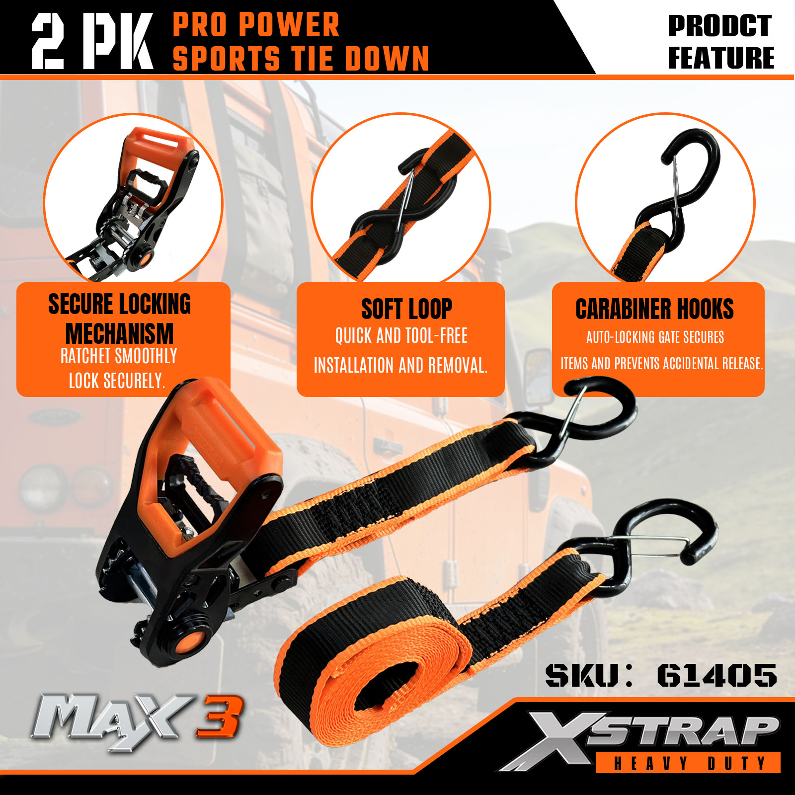 1-1/4 インチ x 14 フィート 2PK パワースポーツ タイダウン ストラップ
