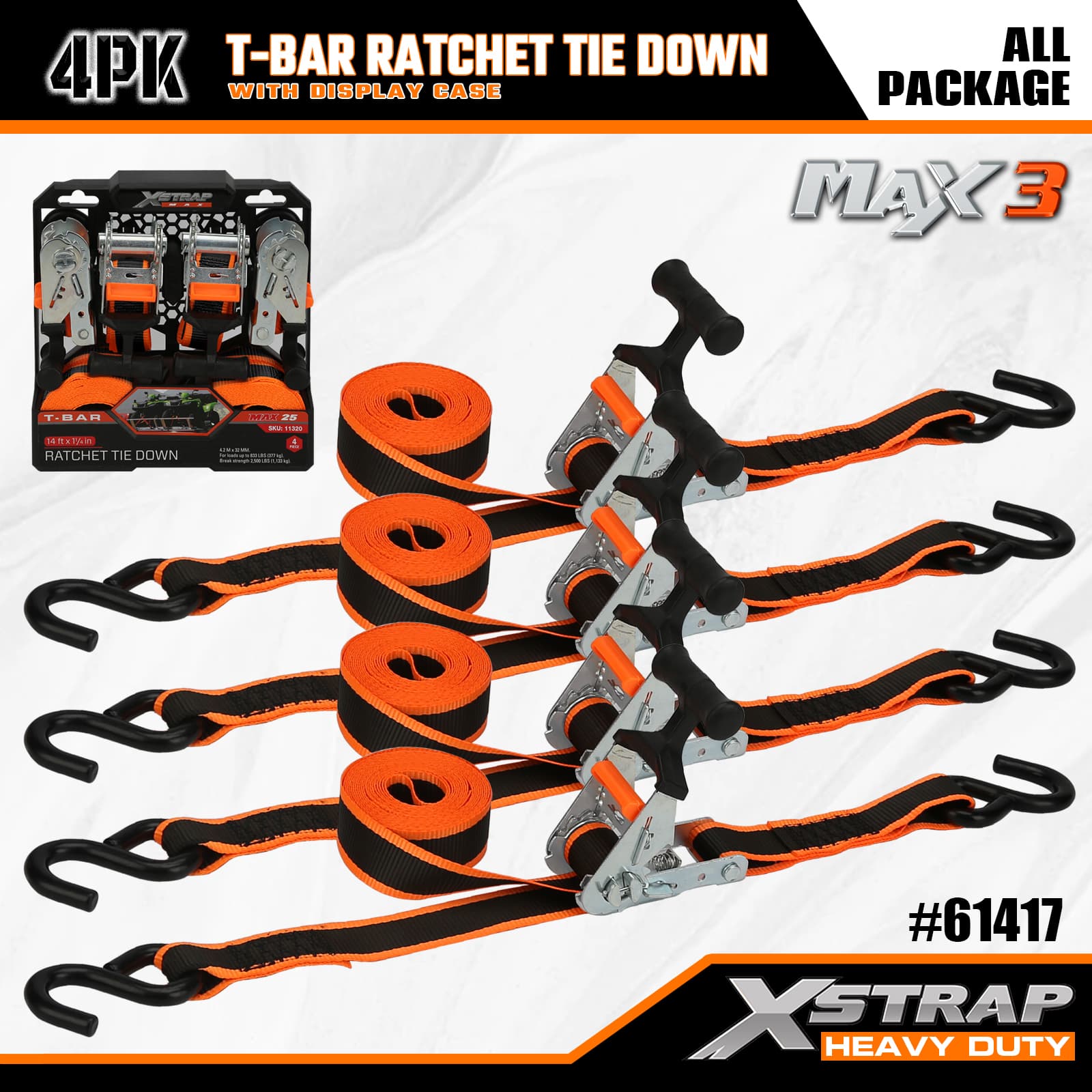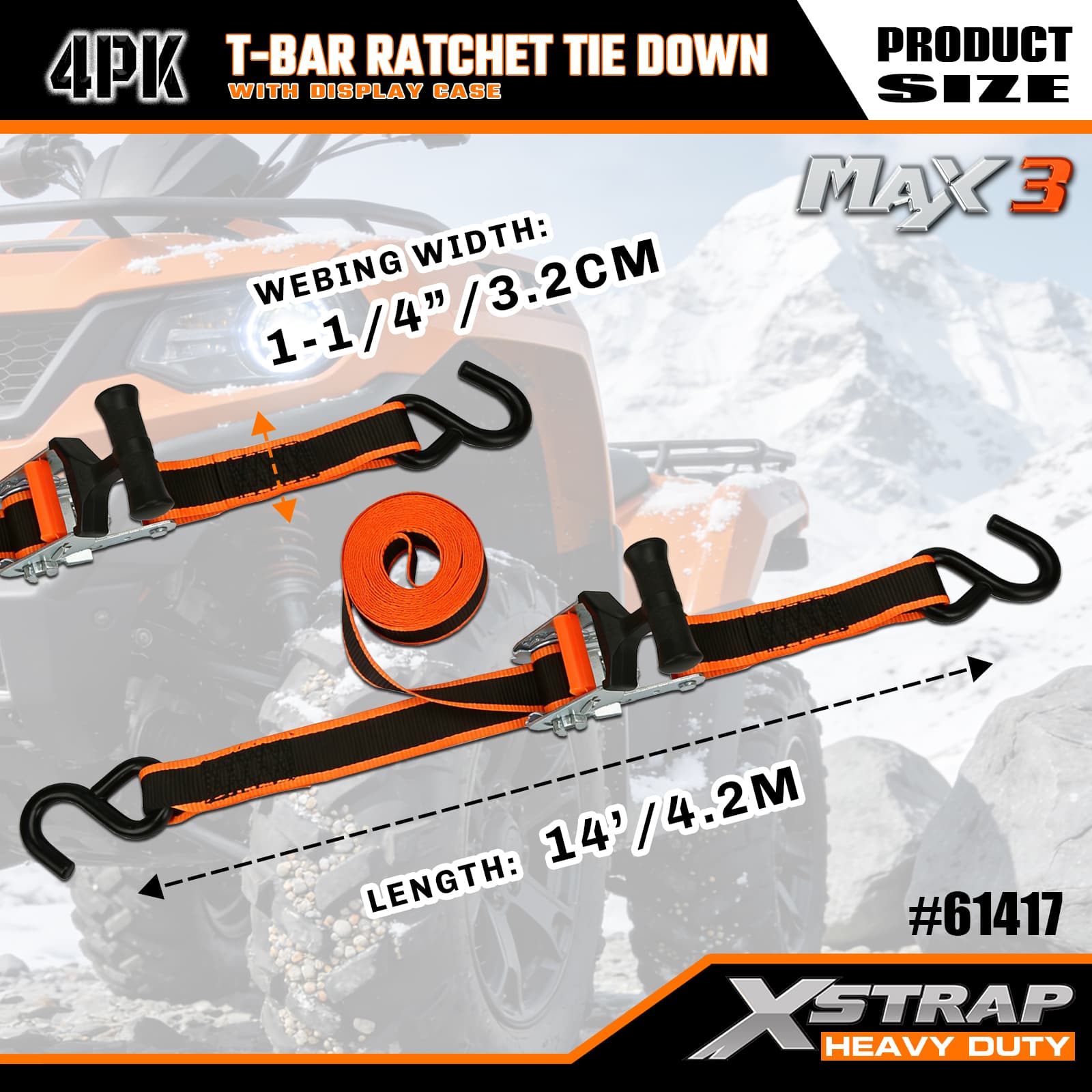 1-1/4 インチ x 14 フィート 4PK T バー ラチェット タイダウン ストラップ