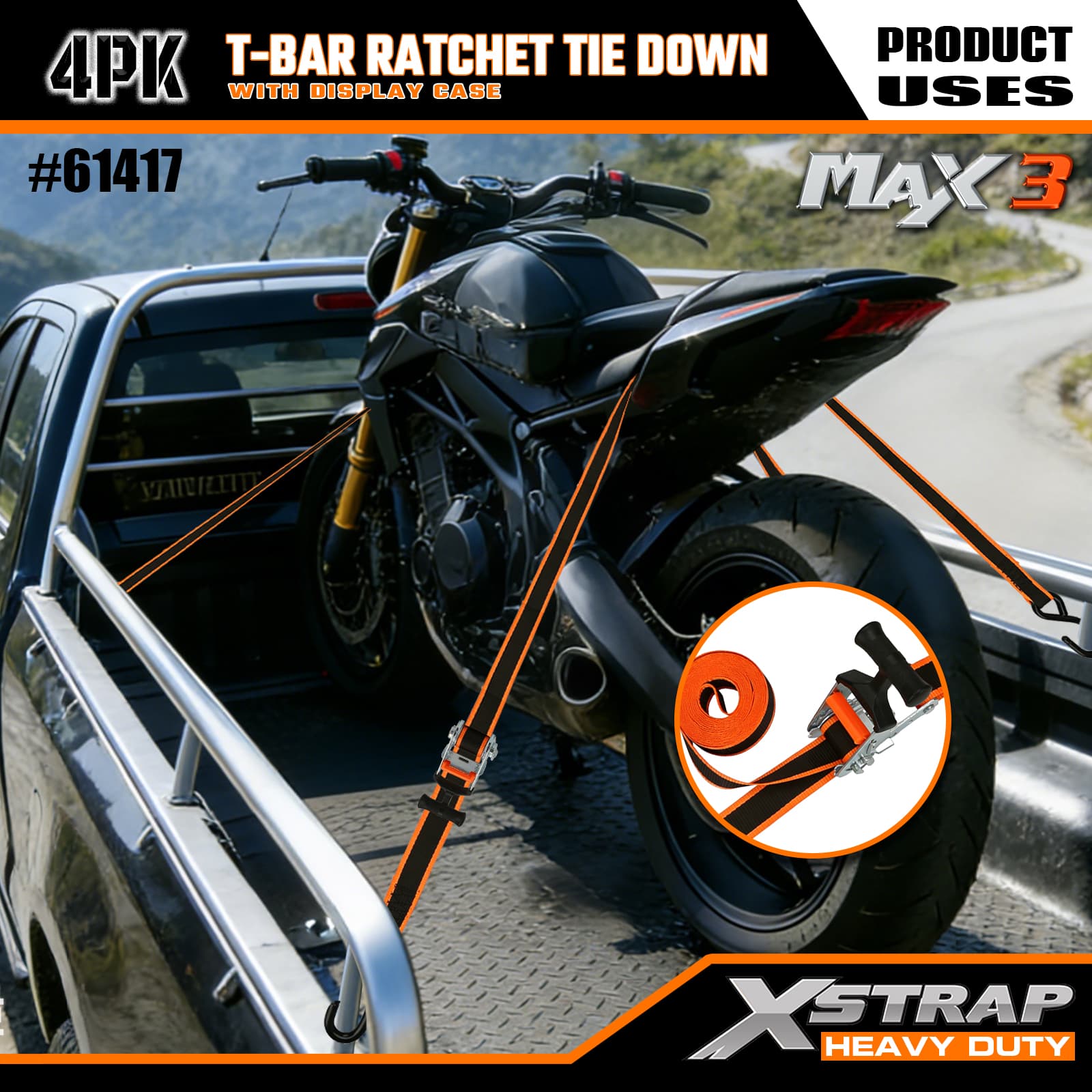 - マックス グリップ T バー ラチェット メカニズム: 人間工学に基づいた T バー ハンドルを備えており、てこの作用を強化してスムーズで少ない力で張力をかけることができます。直感的に操作できるため、どのようなスキル レベルのユーザーでも荷物を素早く固定できます。