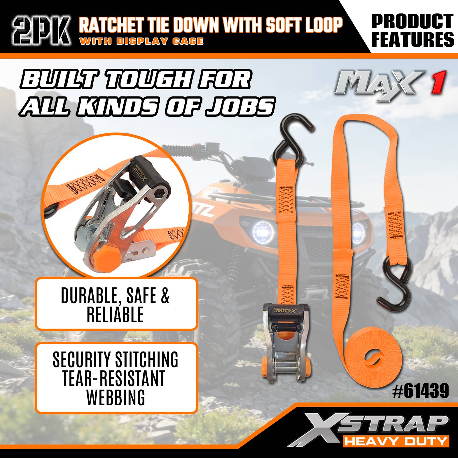 - 手間のかからない操作と保管: ラチェットのスムーズな張力とコンパクトなディスプレイケースにより、使用と整理の両方が簡単になり、ストラップの準備や収納の時間を節約できます。