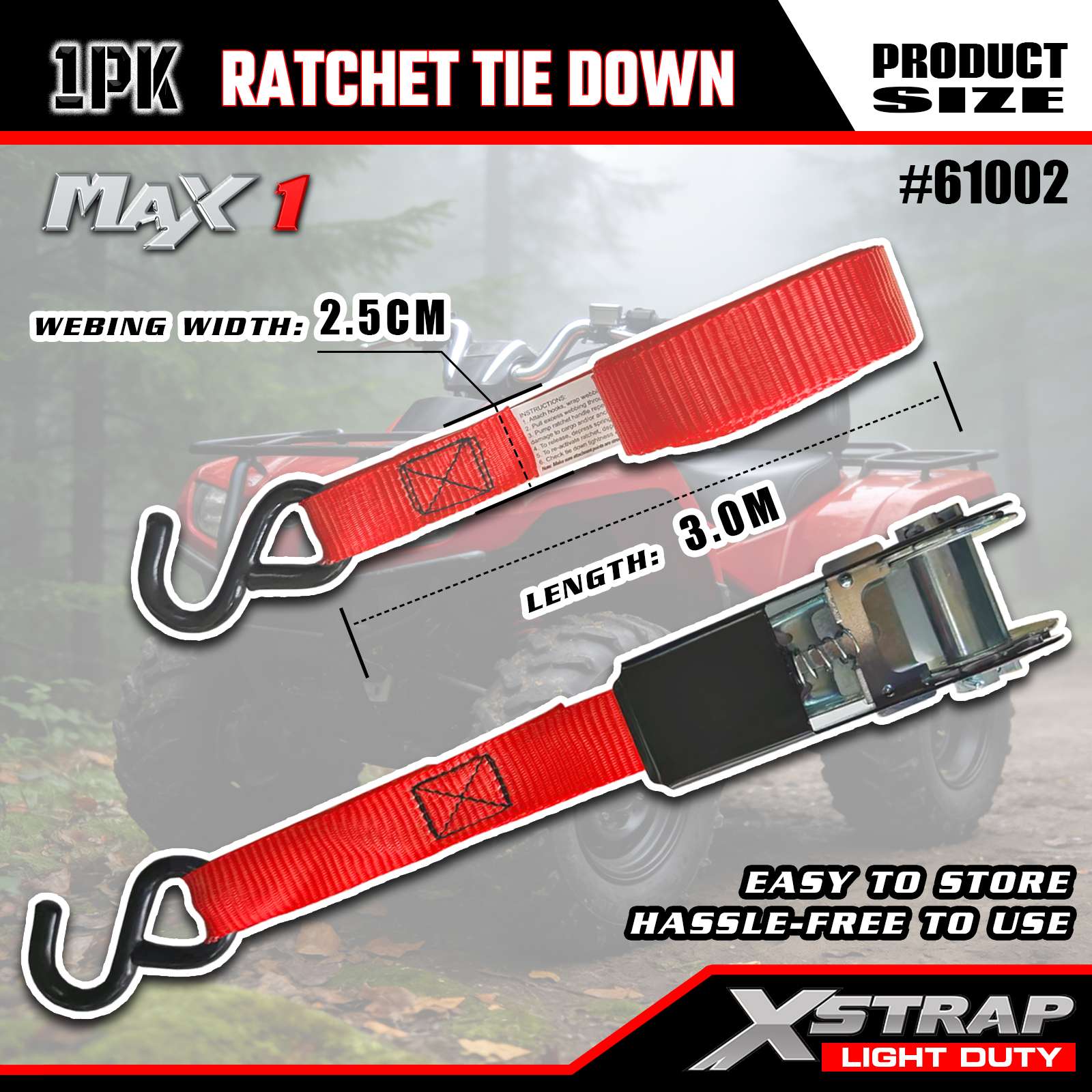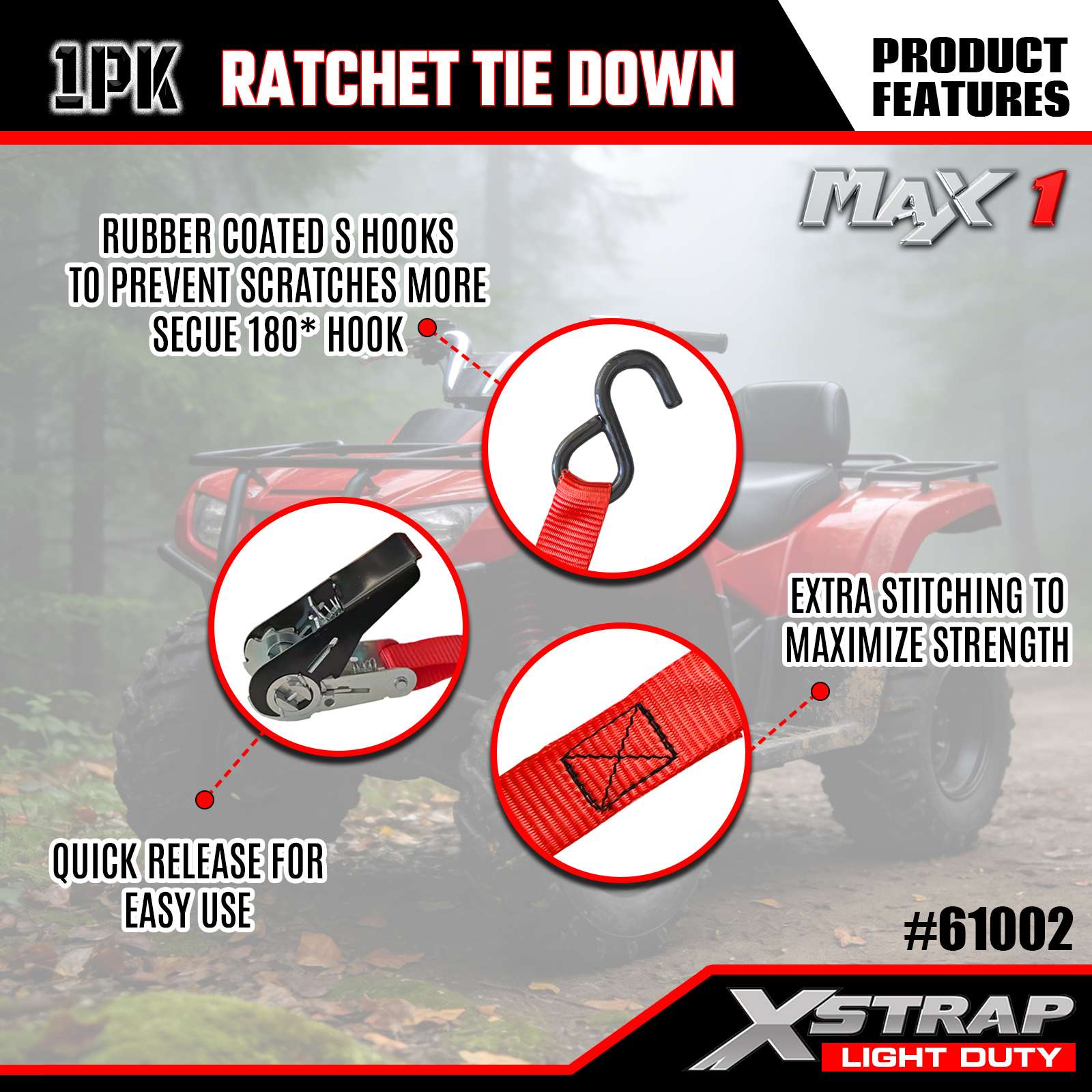 Xstrap 1パック ラチェットタイダウンストラップ 1インチx10フィート - 300ポンドの耐荷重キャップ - 900ポンドの破断強度 - 移動家電、芝生用品、オートバイ、迷彩用カーゴストラップ