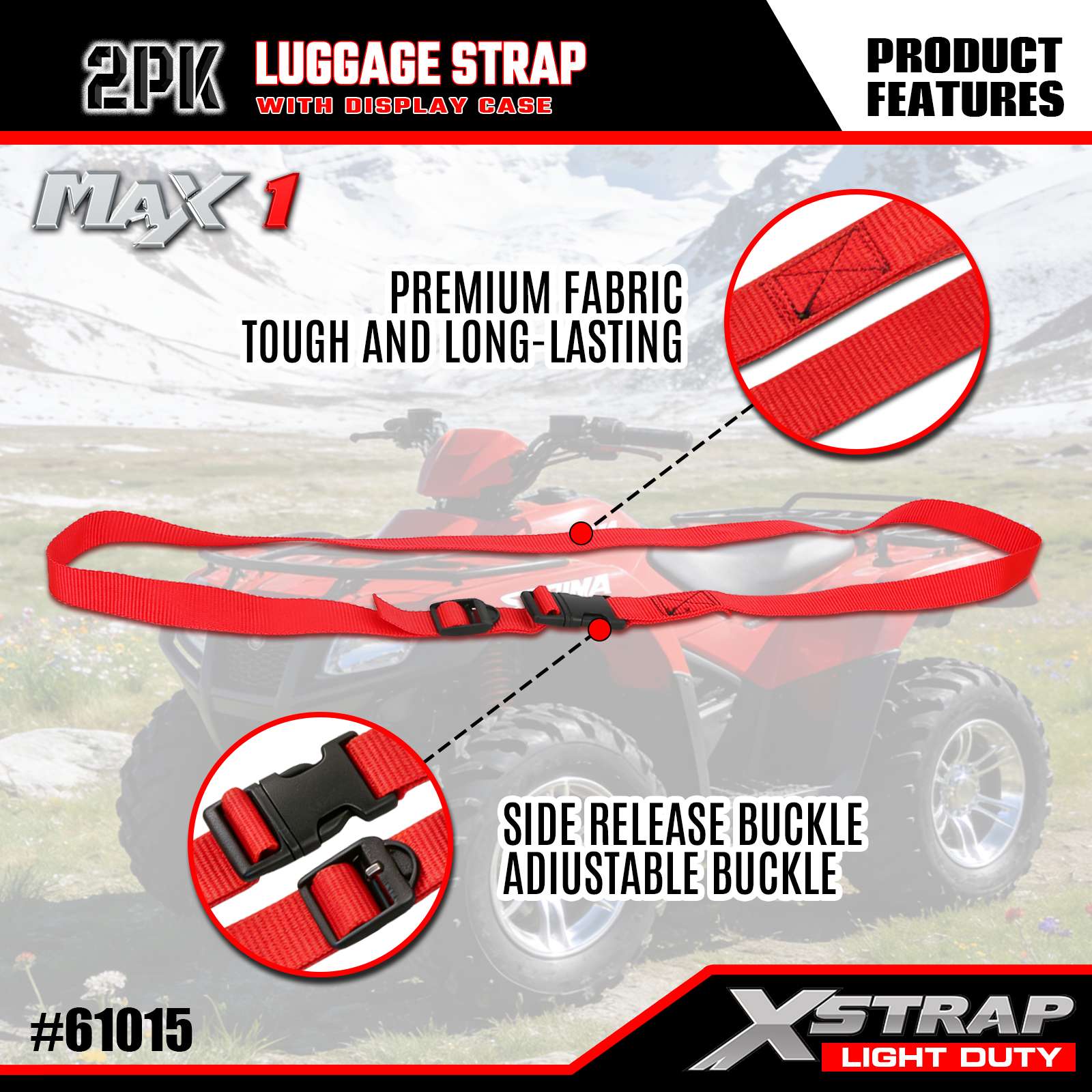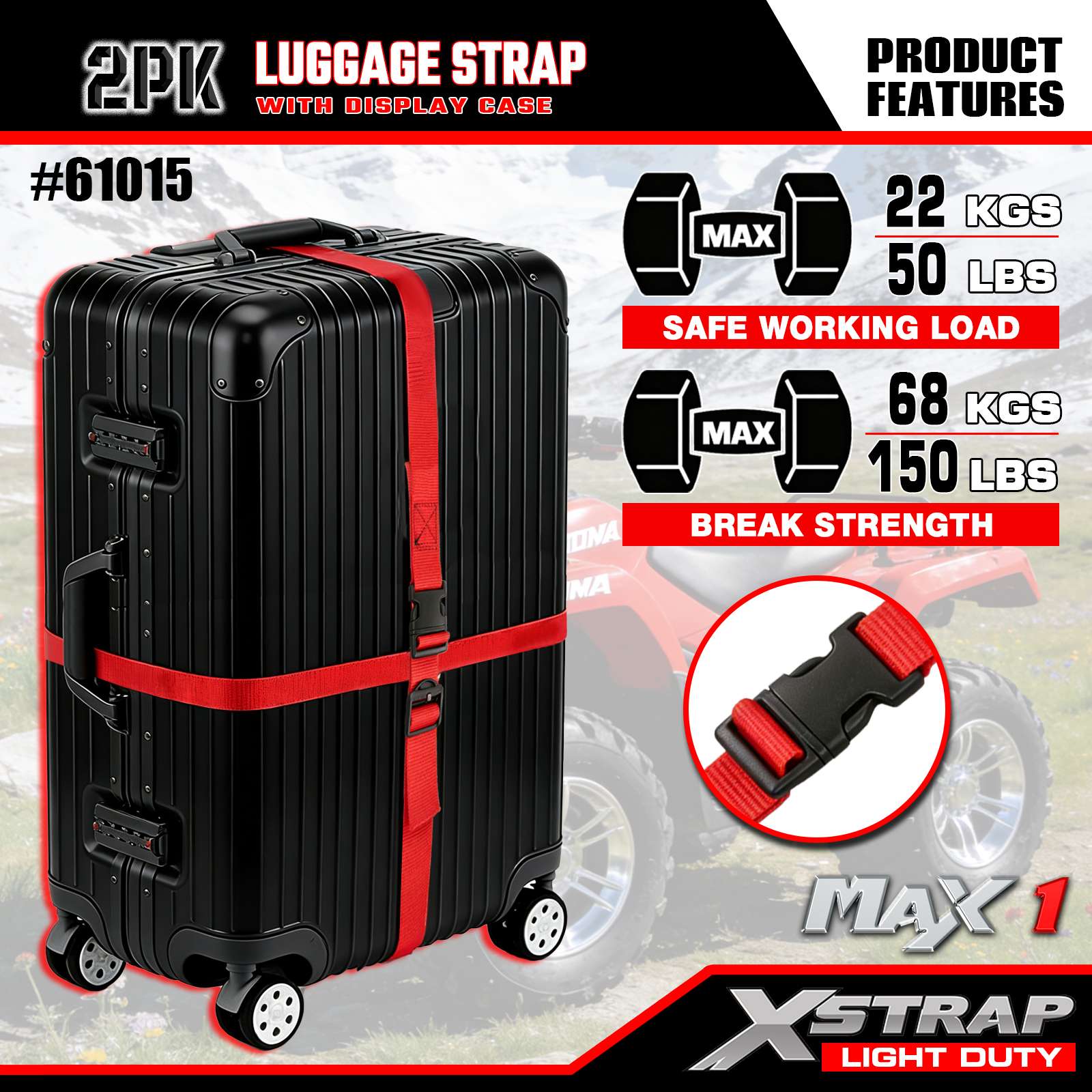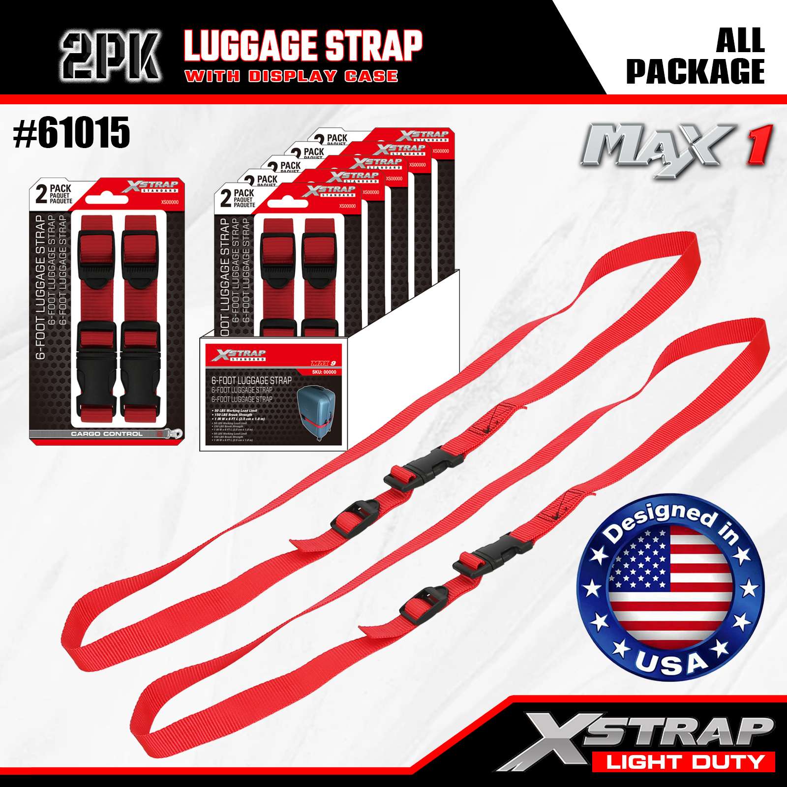 Xstrap 2パック 調節可能な荷物ストラップ、1インチ x 6フィート - 50ポンドの耐荷重キャップ - 破断強度150ポンド - スーツケース用カーゴストラップ、簡単に識別できるトラベルベルトコネクターでスーツケースをまとめて保持し、バッグの寿命を延ばします。ストラップは2つのバッグを接続します、レッド