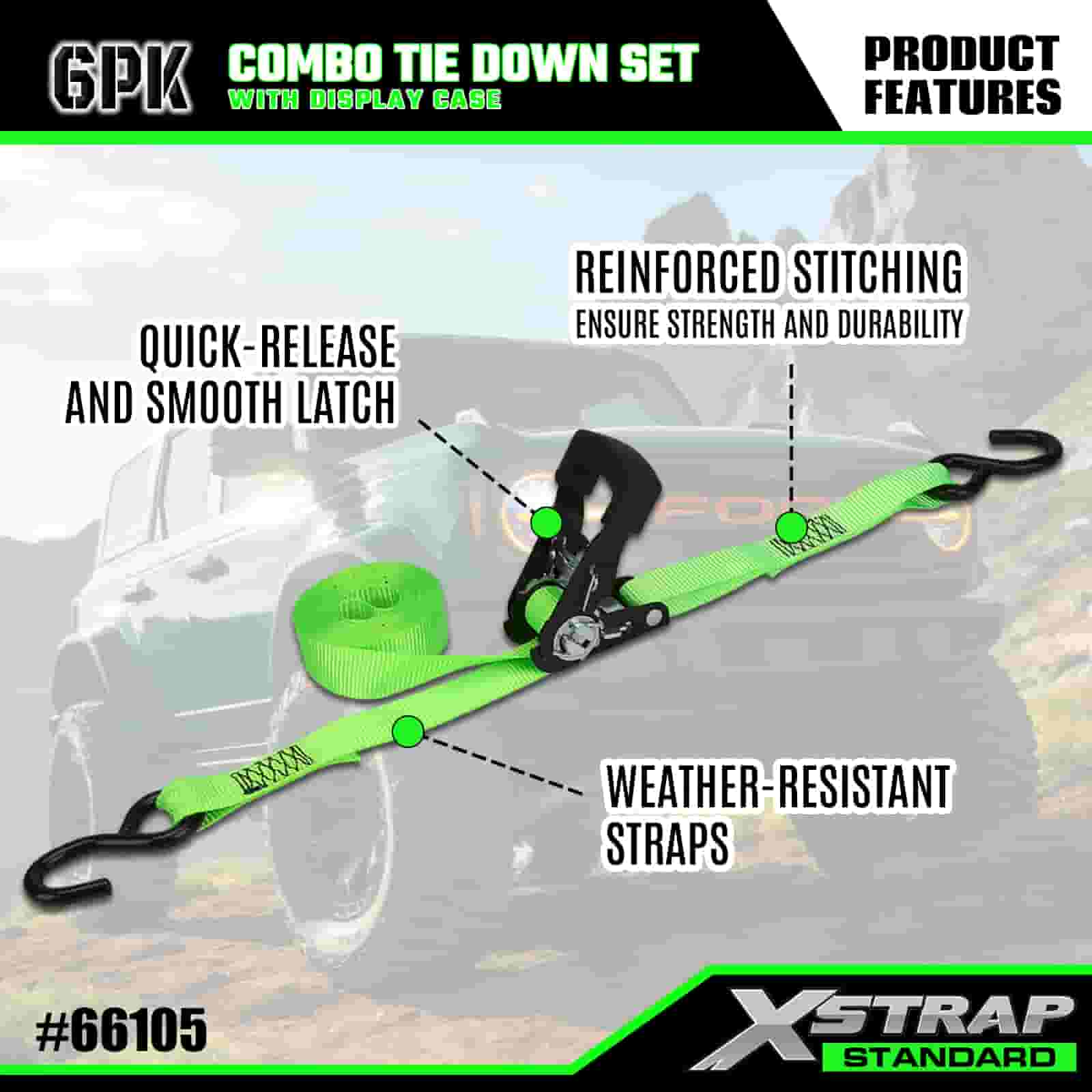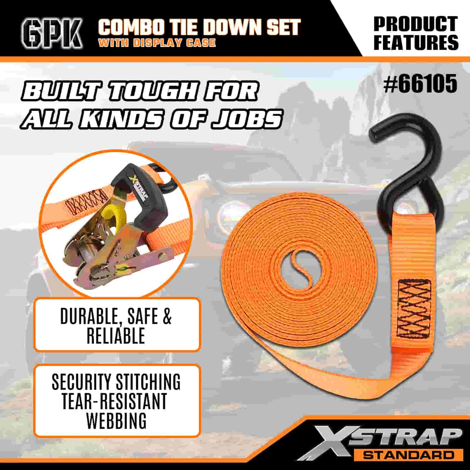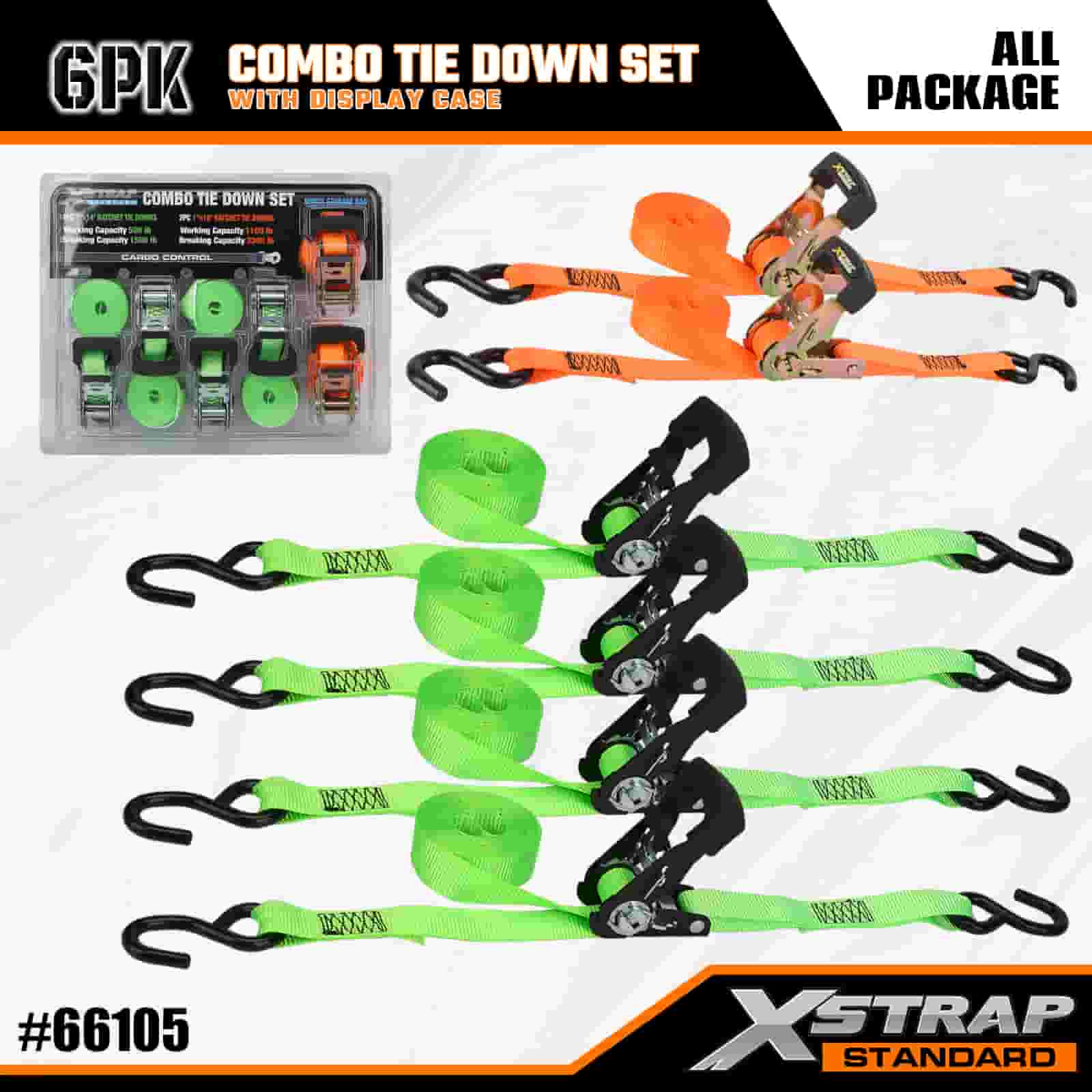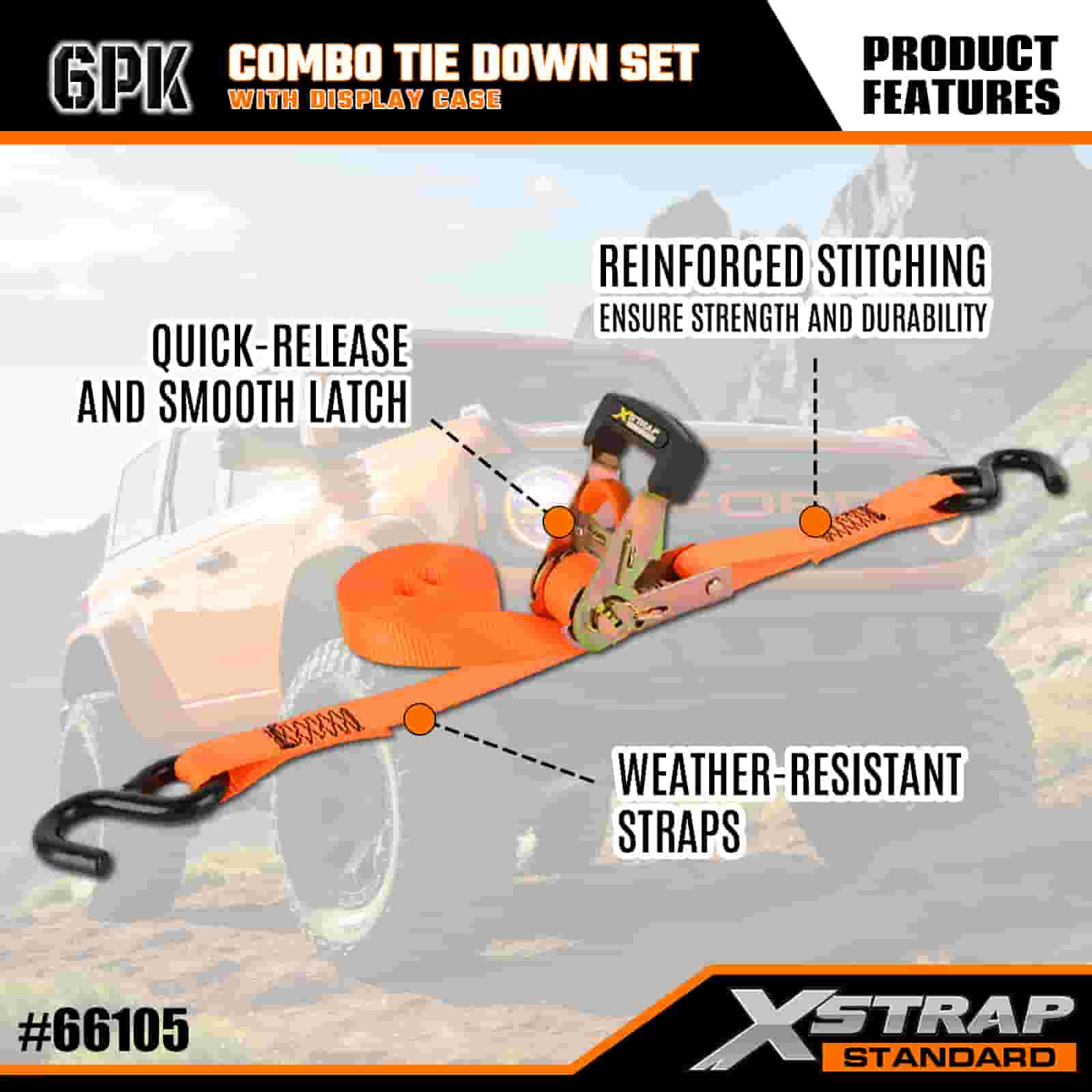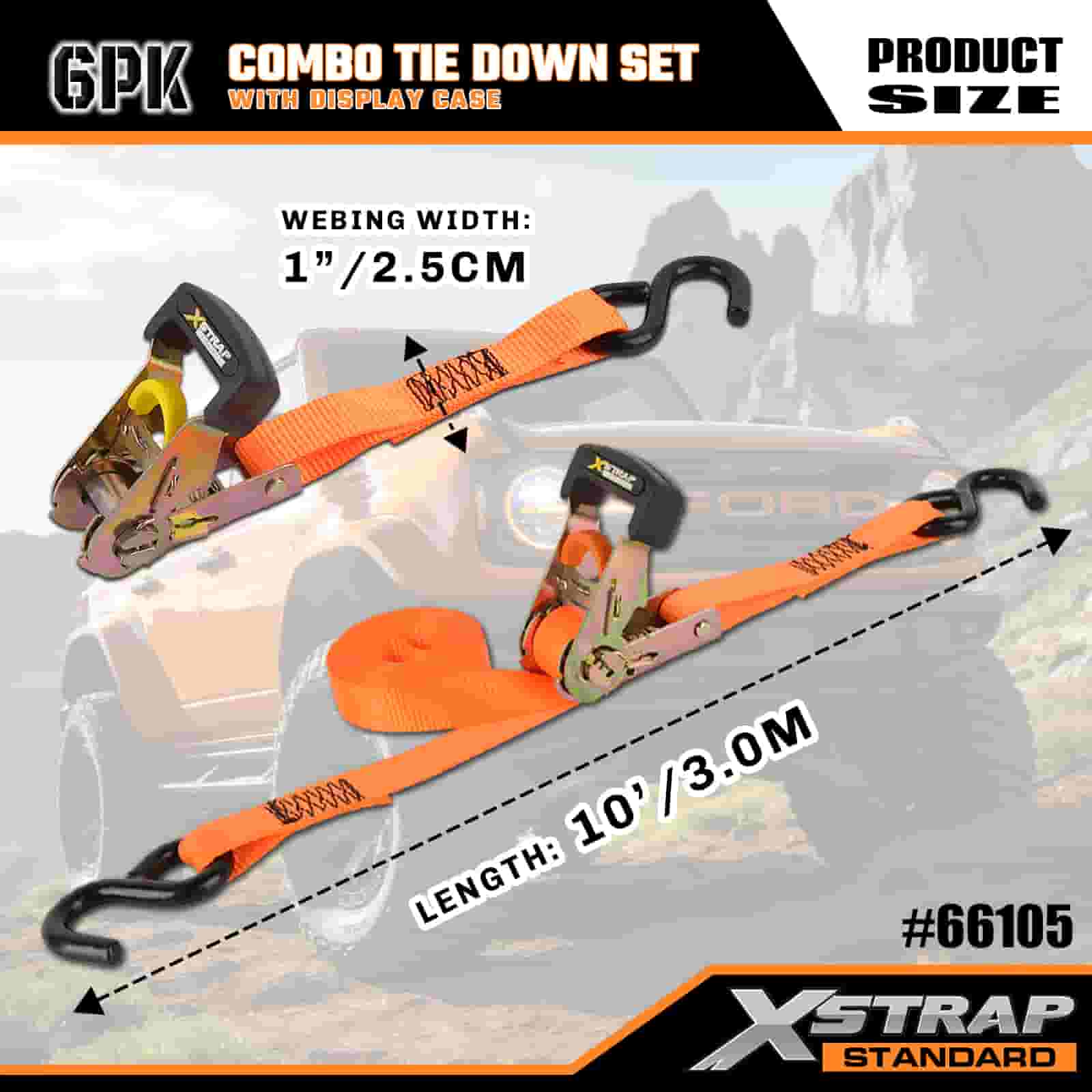 4PK 1 インチ x 14 インチおよび 2PK 1 インチ x 10 インチのコンボ タイダウン セット