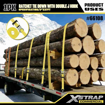 2インチ x 27フィートのラチェットタイダウン、ダブルJフック付き