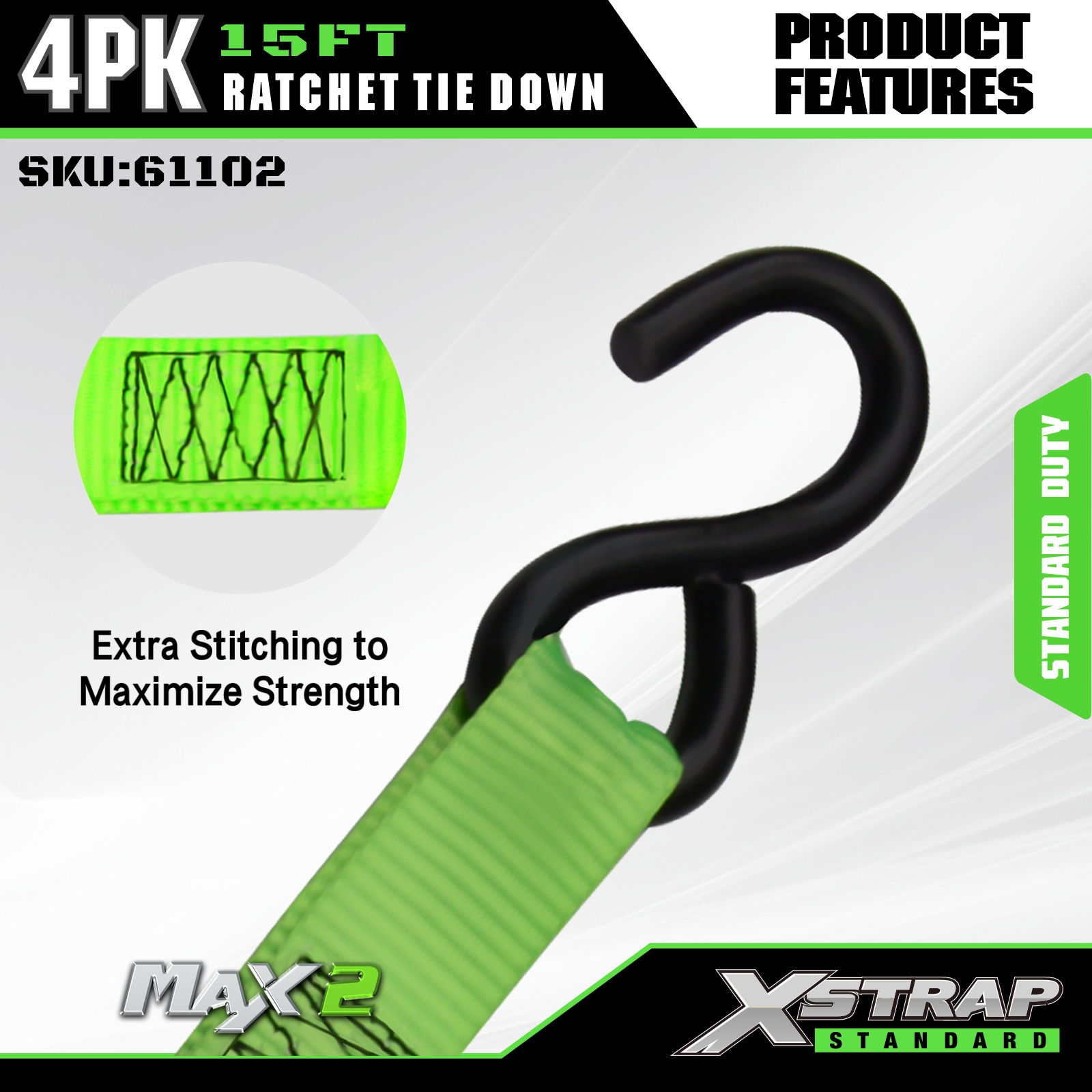 - 保護ラバーコーティングされたS字フック:荷物や車両の表面への傷や損傷を効果的に防止するラバーコーティングされたスチール製のS字フックが装備されています。移動中のトラック、UTV、ATV、ダートバイク、オートバイの荷物の固定や、必須のトラックアクセサリーとして最適です。