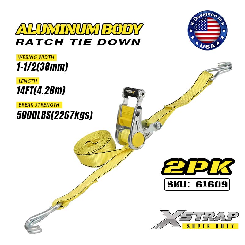 1-1/2 インチ x 14 フィート 2PK ラトセット タイダウン、ダブル J フック付き