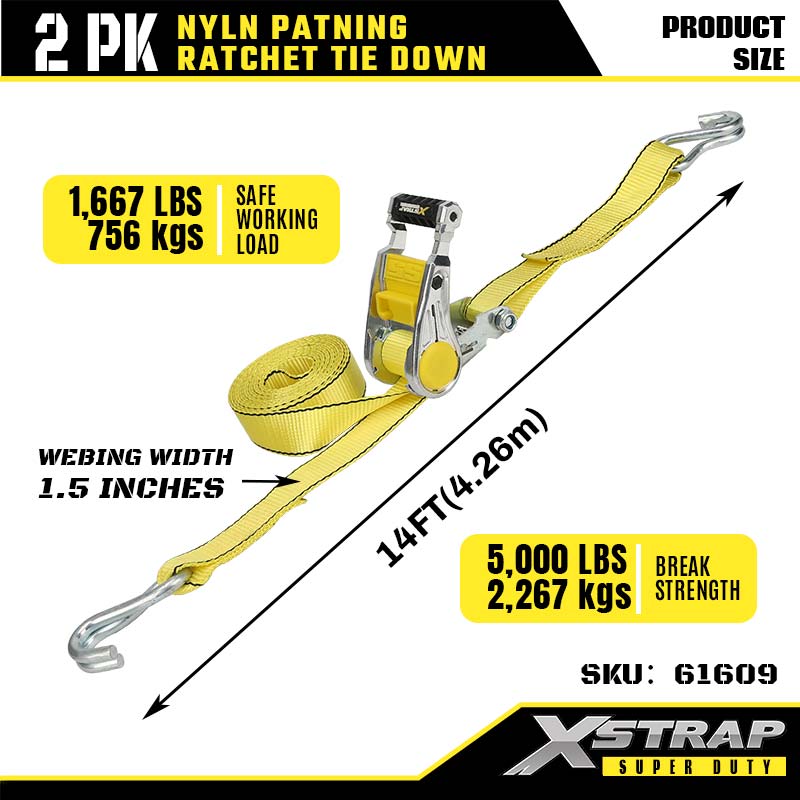 - 2パック14フィート サイズ:幅1.5インチで張力が均等に分散され、損傷を防ぎます。 14フィートの長さはトラックの荷台トレーラーまたはルーフラックに適合します。 2 個のパックには、大きなギアや不規則なギアを固定するのに十分なストラップが付属しています。