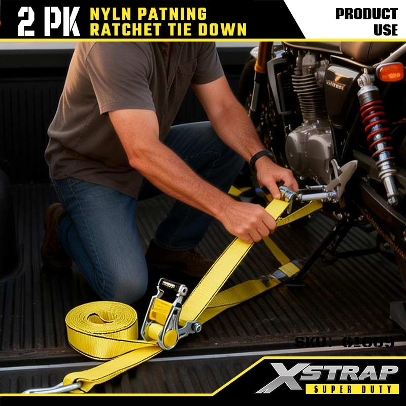 - アルミニウムボディとナイロンウェビング:ラチェットは錆や腐食に強い軽量アルミニウムボディを備えています。厚手のナイロンウェビングには丈夫なステッチが施されており、ほつれを防ぎます。雨の日差しや激しい振動にも耐えます。